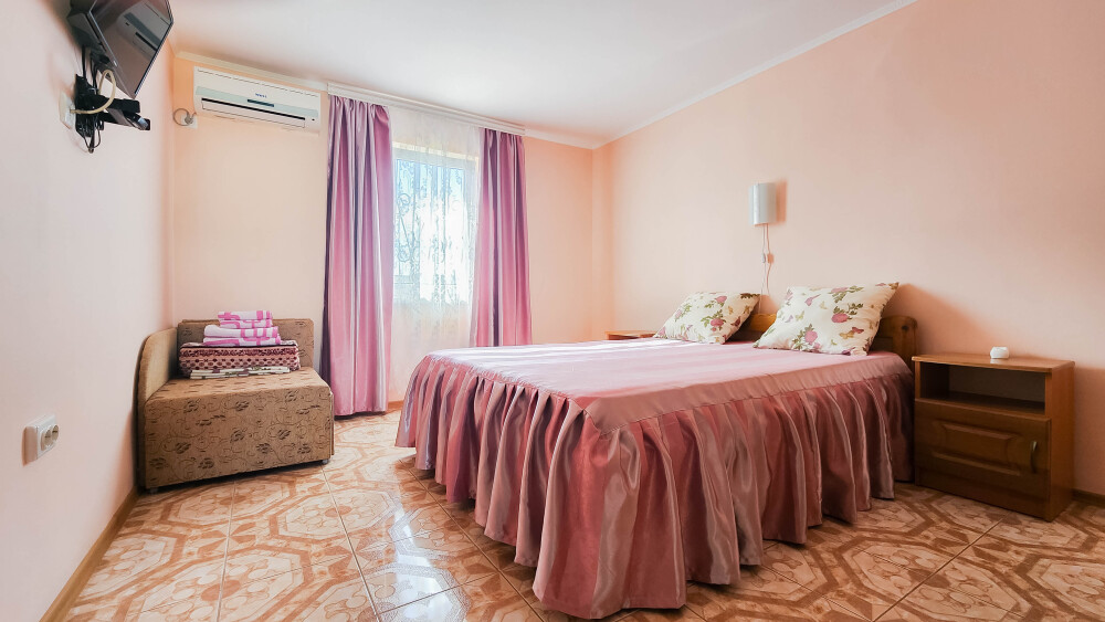 Все номера оснащены кроватями из натурального дерева 2-х и одноместными, в зависимости от номера, новыми матрасами, гипоаллергенными подушками, прикроватными тумбочками, шкаф-прихожая с зеркалом, кондиционером,LCD телевизором с спутниковым TV, постельным бельем, набором полотенец, на окнах москитные сетки, душевая с санузлом, фен, вода хол./гор. круглосуточно.Wi-Fi.