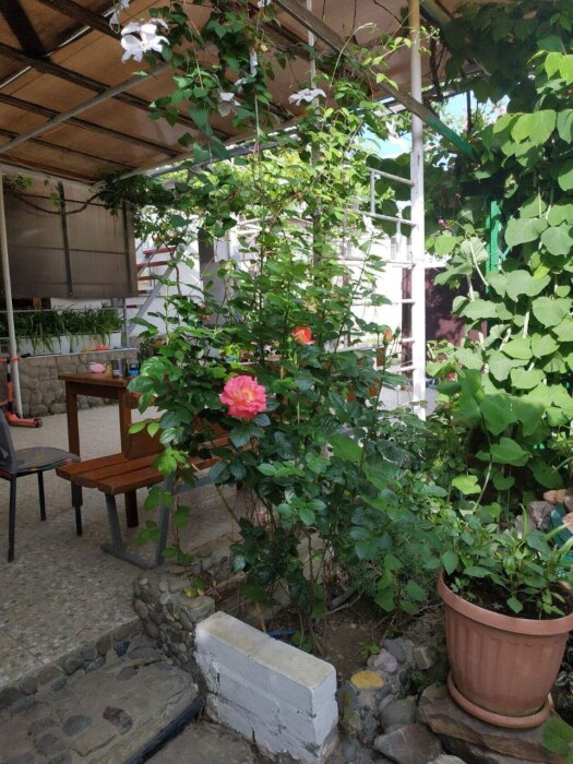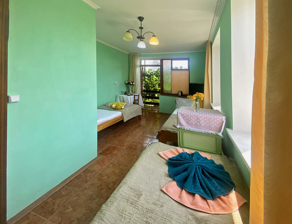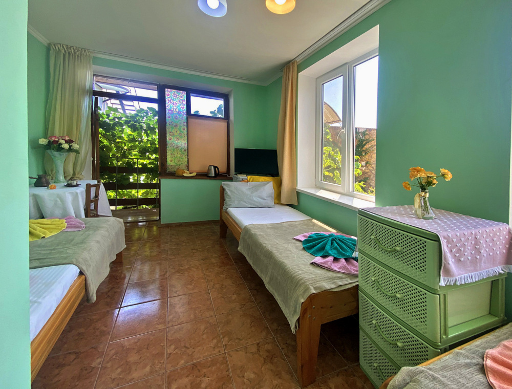 Есть общая кухня. Туалет и душ находятся во дворе, в 7 метрах от номера.