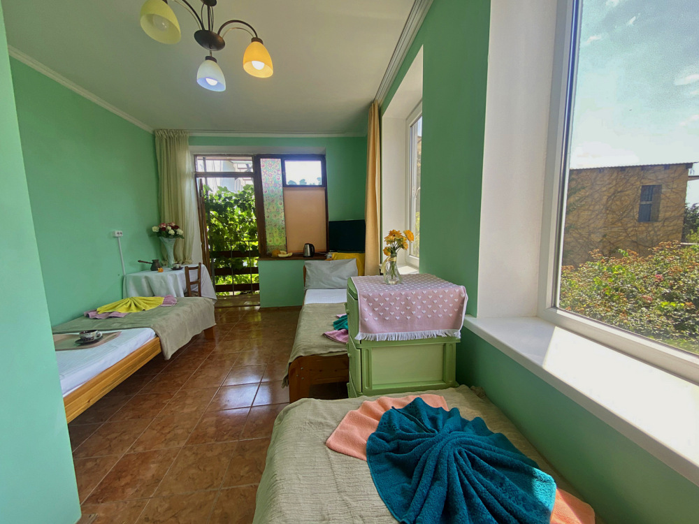 10 минут пешком до моря, 15 минут до подножия потухшего вулкана Карадаг.