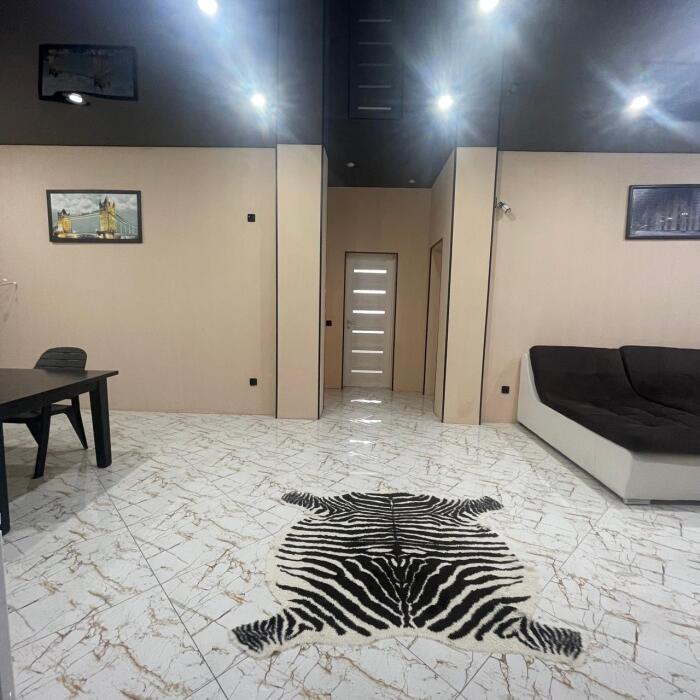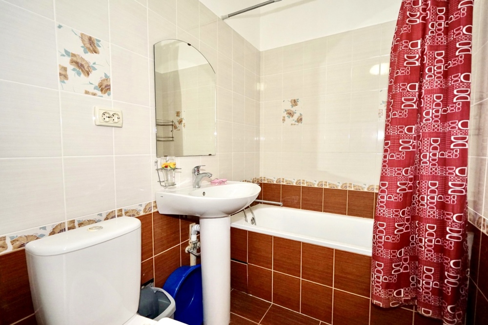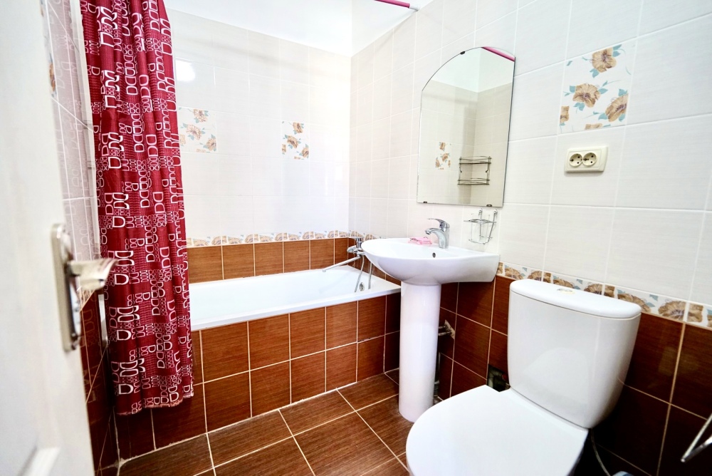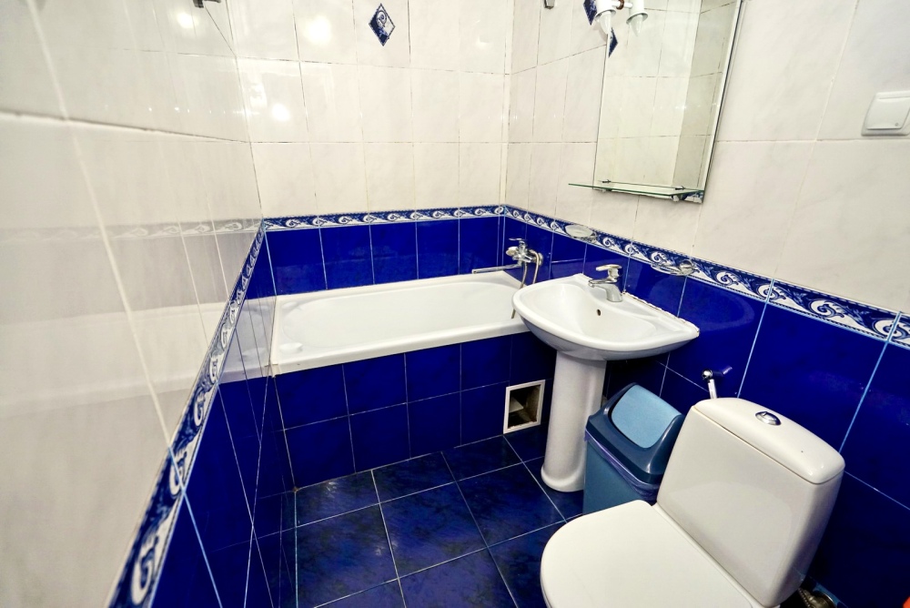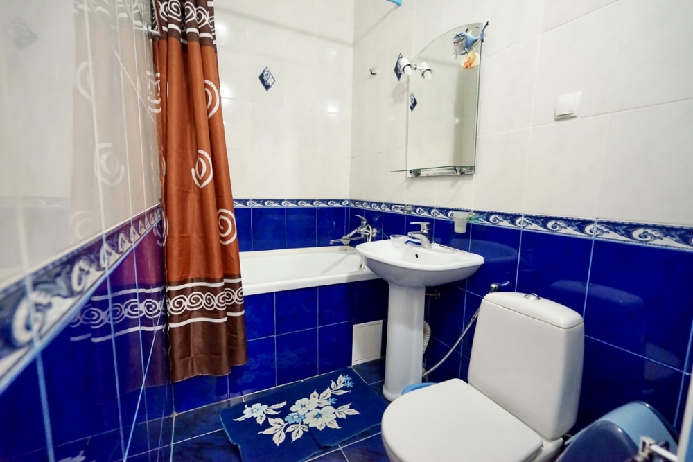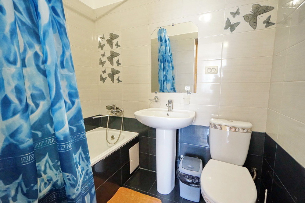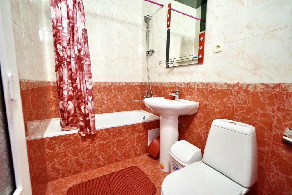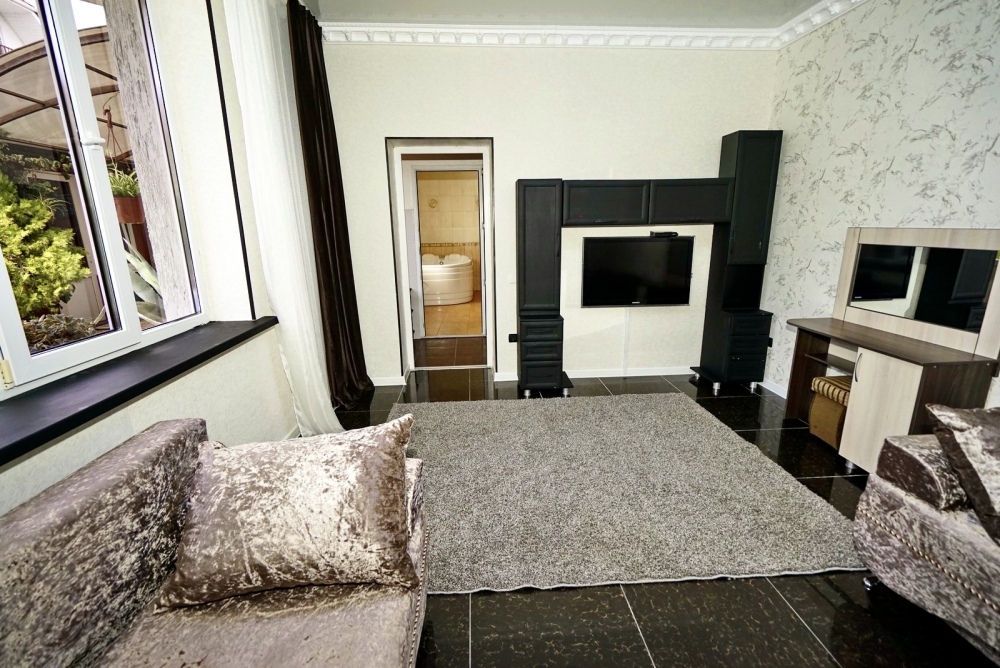 Спальные места: два комфортных двух-спальных дивана. Мебель: стулья, стол, шкаф, прикроватные тумбочки, прихожая, вешалка, зеркало. Техника: Телевизор, холодильник, кондиционер, чайник, постельное бельё, полотенца. Номер с личным выходом к бассейну и кухне. В номере имеется ванная и отдельно душевая кабина, туалет.