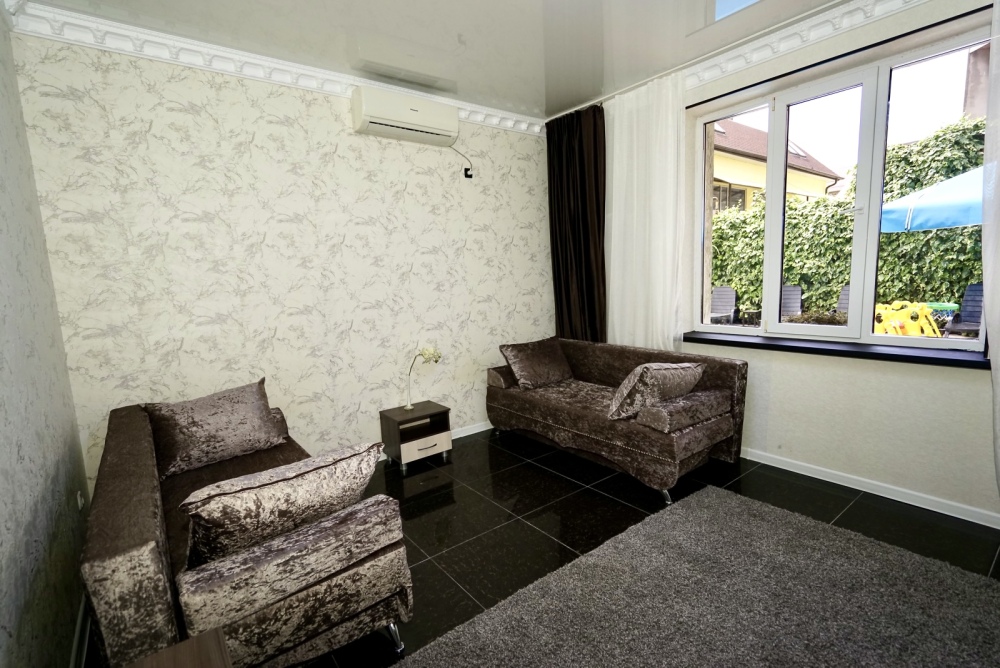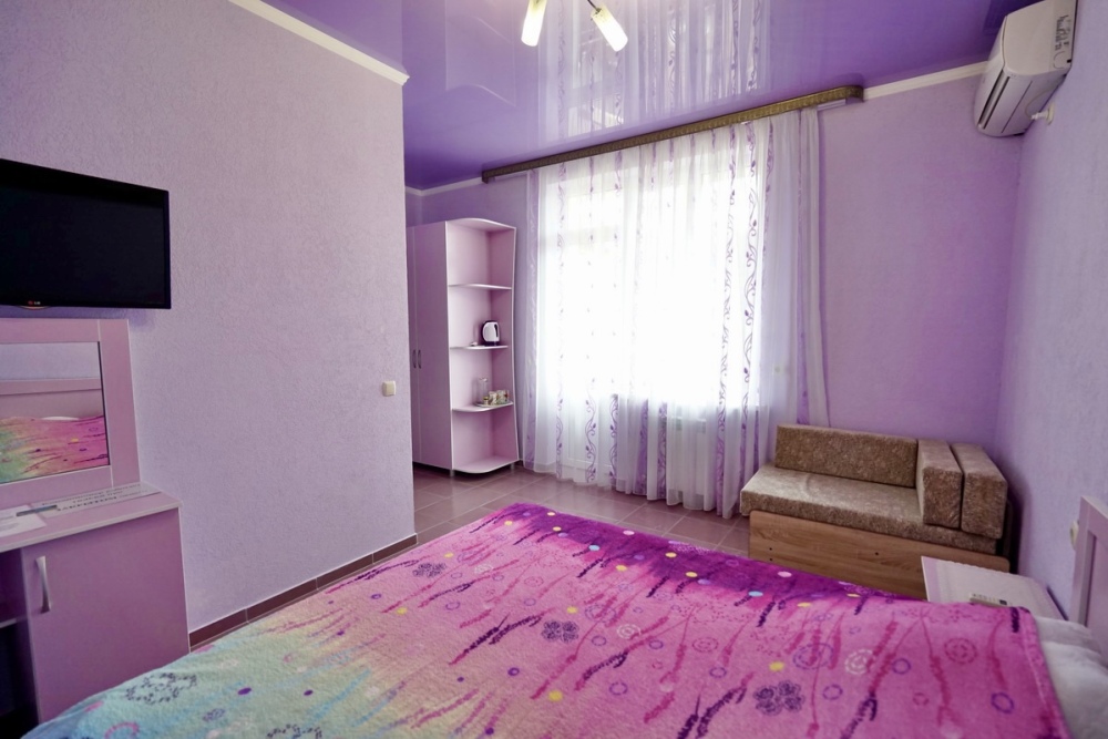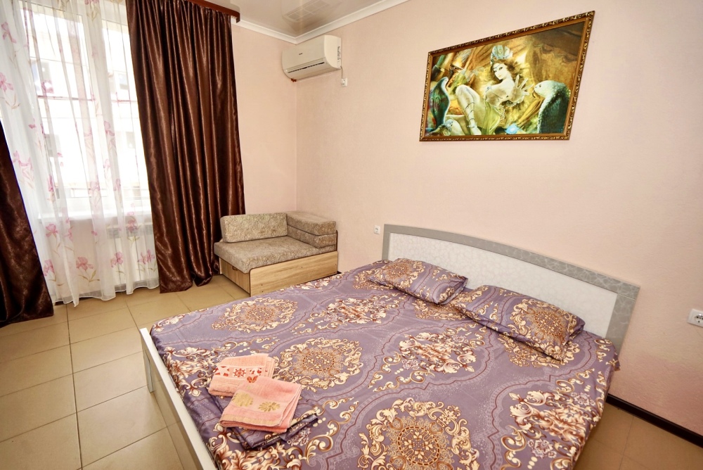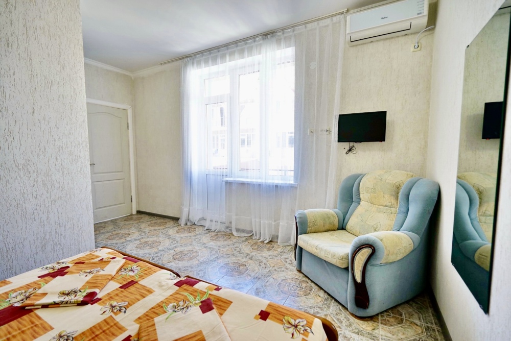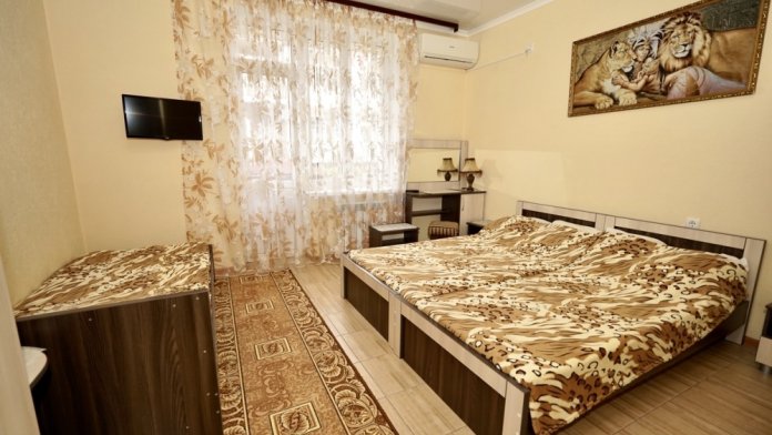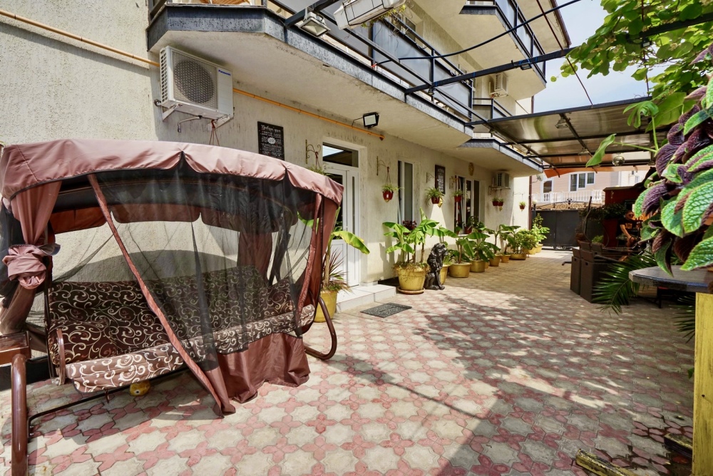 Все номера оснащены необходимой техникой и мебелью: кондиционер, холодильник, телевизор. Двор гостевого дома ухожен и оборудован местами для отдыха! Во дворе есть столы с навесами и оборудованные летние кухни, что дает существенно экономить на питании и готовить по своему расписанию! Зона барбекю находится на соседней территории нашего гостевого дома, в 5х минутах ходьбы. А в непогоду или просто когда лень идти на море, у нас есть теплый бассейн, для освежения и отдыха. Гостевой дом для тех, кто ценит спокойный, «домашний» отдых вдали от шума набережной, но с возможностью быстро до неё добраться.