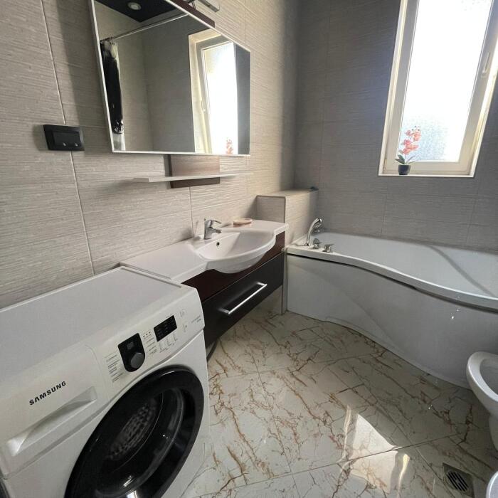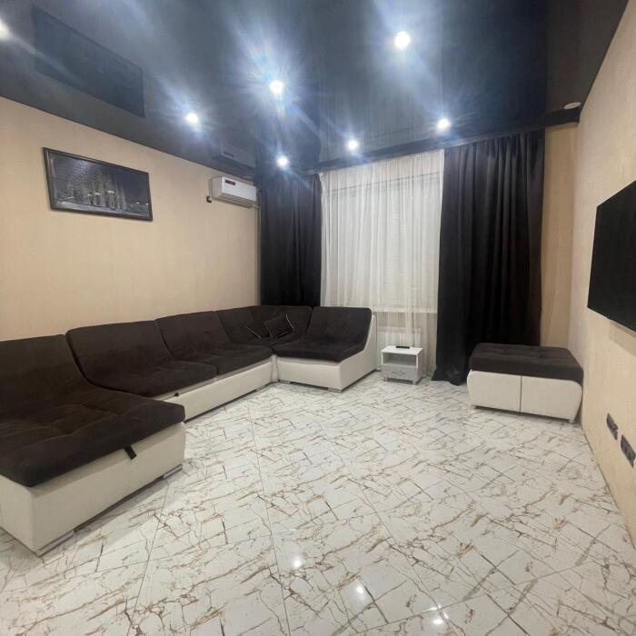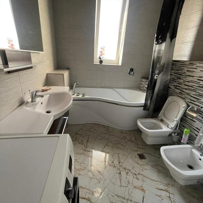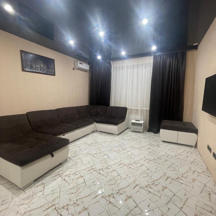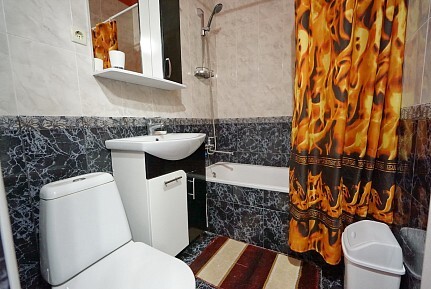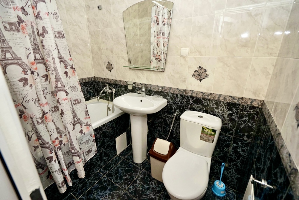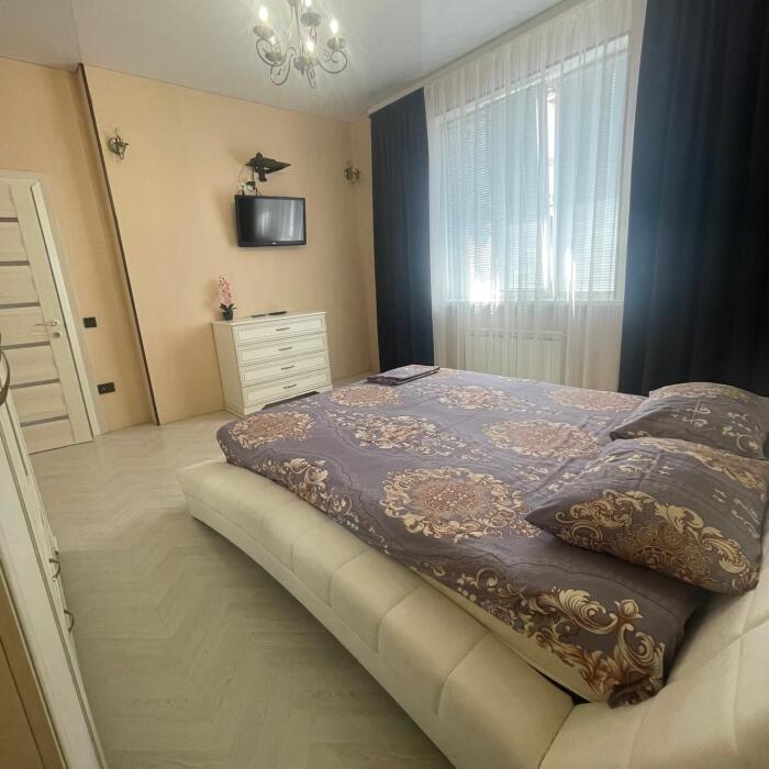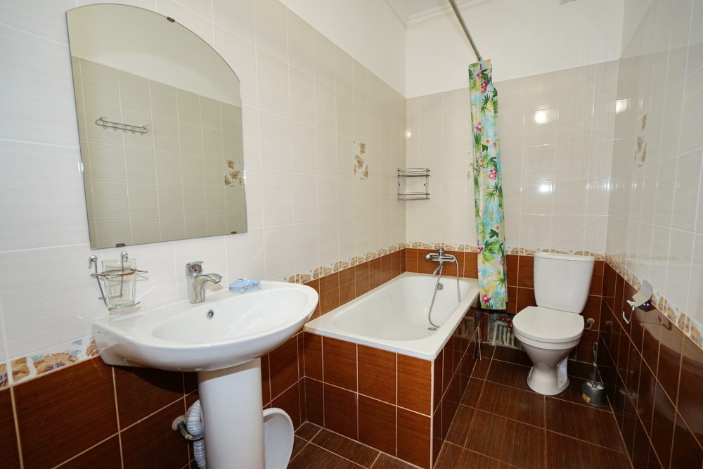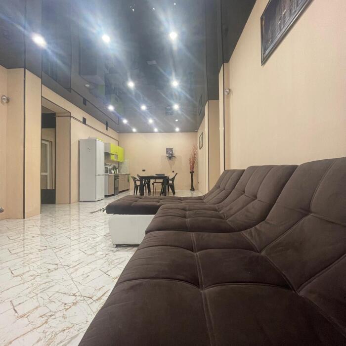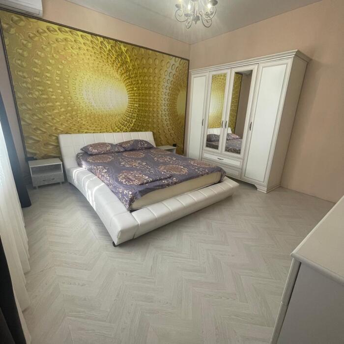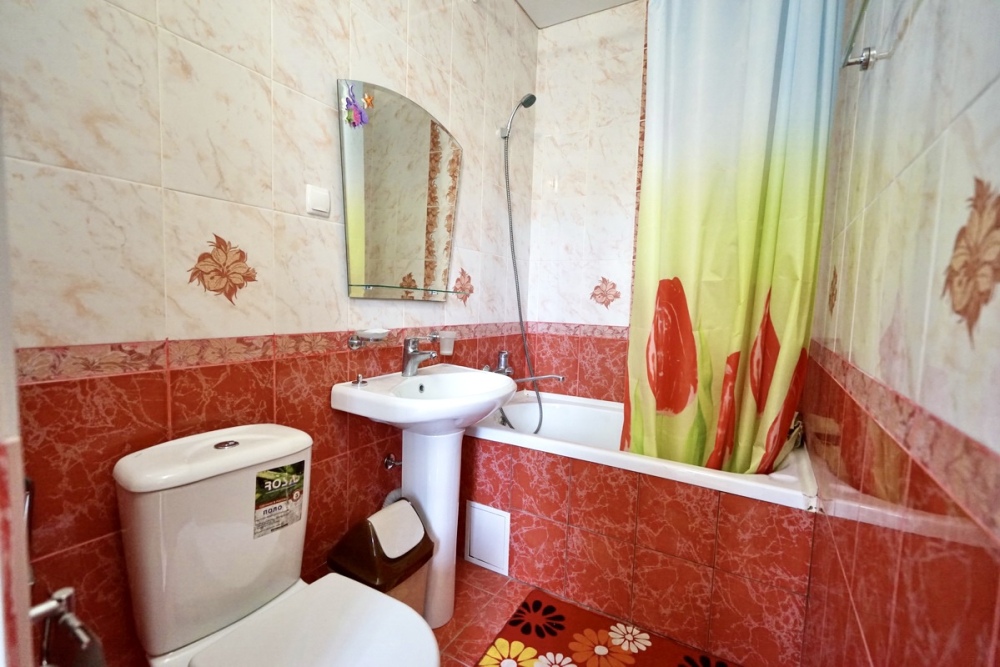 Этаж под ключ (две изолированные комнаты и одна проходная). Собственная кухня, собственный дворик. Спальные места: двухспальная кровать, односпальная кровать и два двухспальных дивана. Мебель: стулья, стол, шкаф, прикроватные тумбочки, прихожая, вешалка, зеркало. Техника: Телевизор, холодильник, кондиционер, микроволновка, чайник, плита, духовка. Санузел, интернет, постельное бельё, полотенца, посуда.