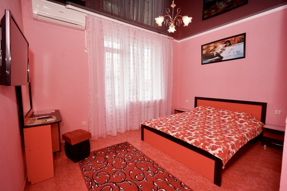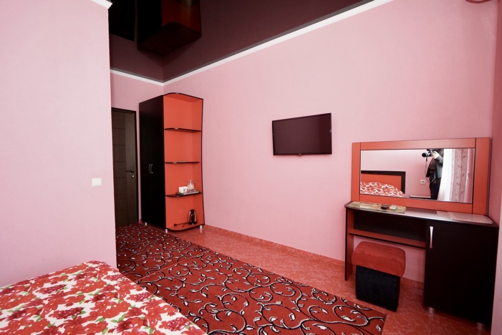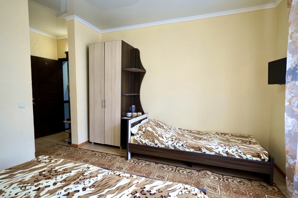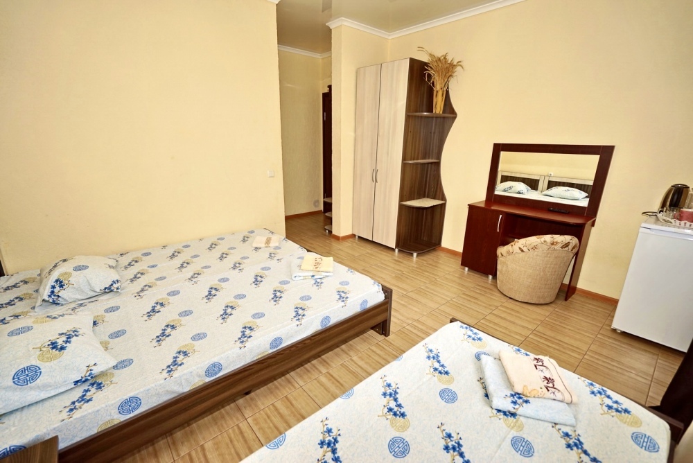 Спальные места: две односпальные кровати. Мебель: стулья, стол, шкаф, прикроватные тумбочки, прихожая, вешалка, зеркало. Техника: Телевизор, холодильник, кондиционер. Во всех номерах личный санузел, интернет, постельное бельё, полотенца.