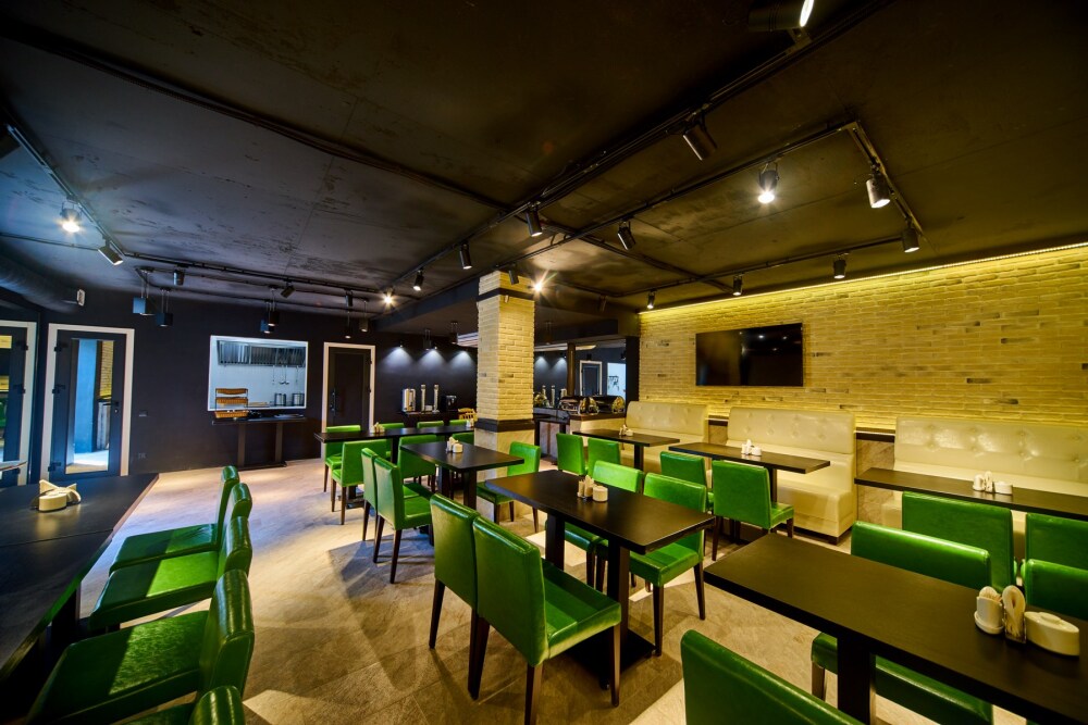 В современном кафе с открытой кухней, выполненном в стиле LOFT, подаются завтраки по системе шведский стол, комплексные обеды и ужины. Обслуживаются столики у бассейна с видом на парковую зону комплекса.