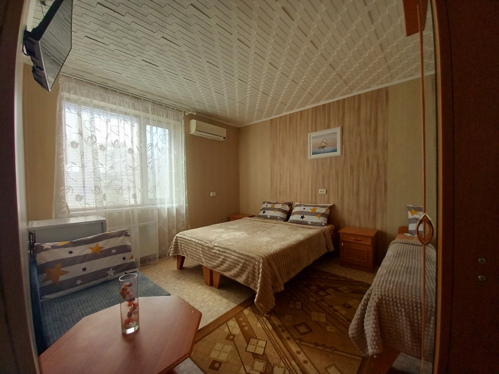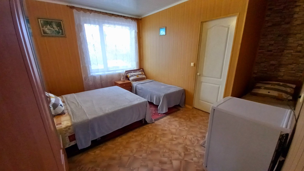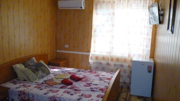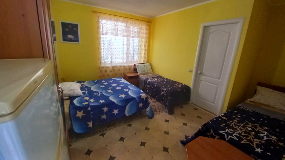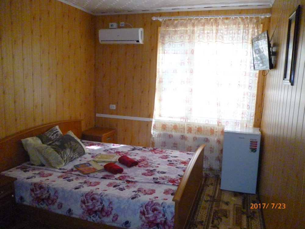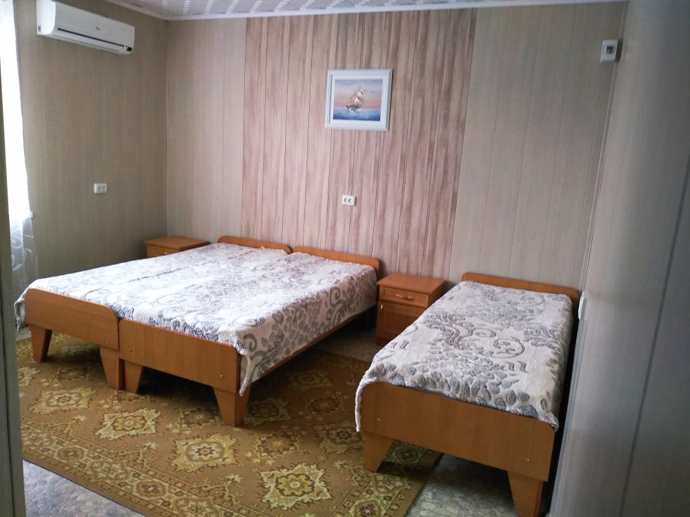 До набережной и пляжа 600 метров по ровному рельефу.Пляж песчано-галечный,бесплатный.В гостевом доме 13 номеров,2-местные и 3-местные.Все номера с удобствами( туалет,душ,раковина),с кондиционерами,холодильниками,телевизорами и др.WI-FI бесплатный на всей территории и в номерах.Имеется кухня общего пользования,большая летняя площадка,где можно посидеть отдохнуть и принять пищу.Имеется мангал.Вся территория утопает в зелени кипарисов,туй,цветов.Очень тихий р-он,близко к морю.