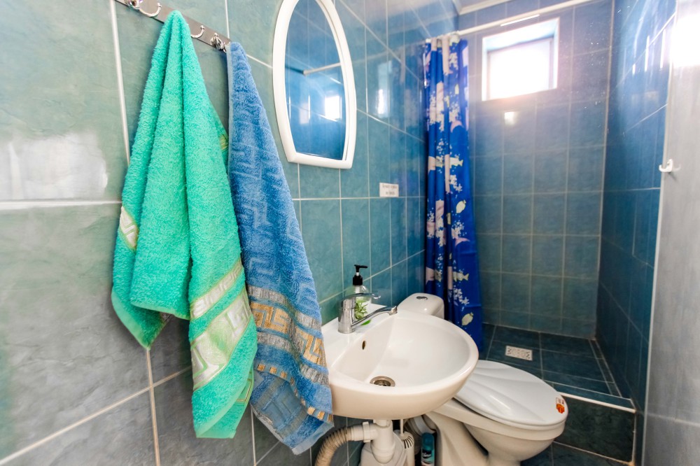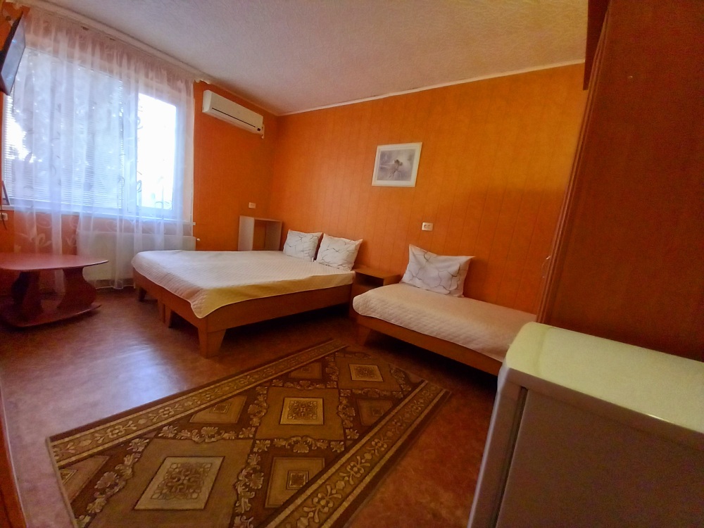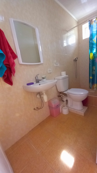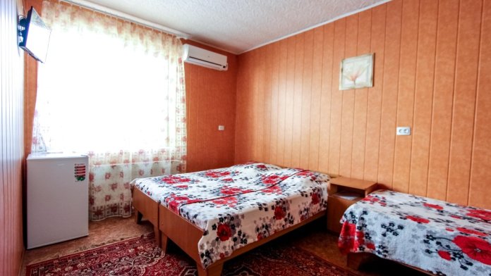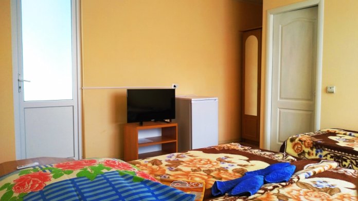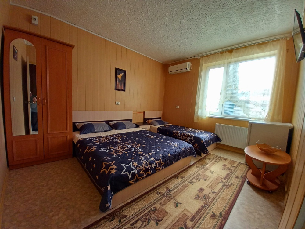 До набережной и пляжа 600 метров по ровному рельефу.Пляж песчано-галечный,бесплатный.В гостевом доме 13 номеров,2-местные и 3-местные.Все номера с удобствами( туалет,душ,раковина),с кондиционерами,холодильниками,телевизорами и др.WI-FI бесплатный на всей территории и в номерах.Имеется кухня общего пользования,большая летняя площадка,где можно посидеть отдохнуть и принять пищу.Имеется мангал.Вся территория утопает в зелени кипарисов,туй,цветов.Очень тихий р-он,близко к морю.