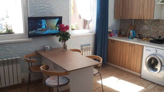 В квартире имеется вся необходимая мебель, двуспальный диван и двуспальная кровать, обеденный стол, стулья, шкаф. Вся бытовая техника, холодильник, телевизор, плита, чайник, вся посуда, Wi-Fi.