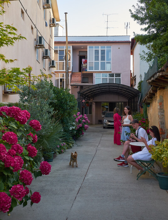 Гостевой дом расположен в центре Адлера. В доме три этажа. Хозяева проживают в этом же доме.