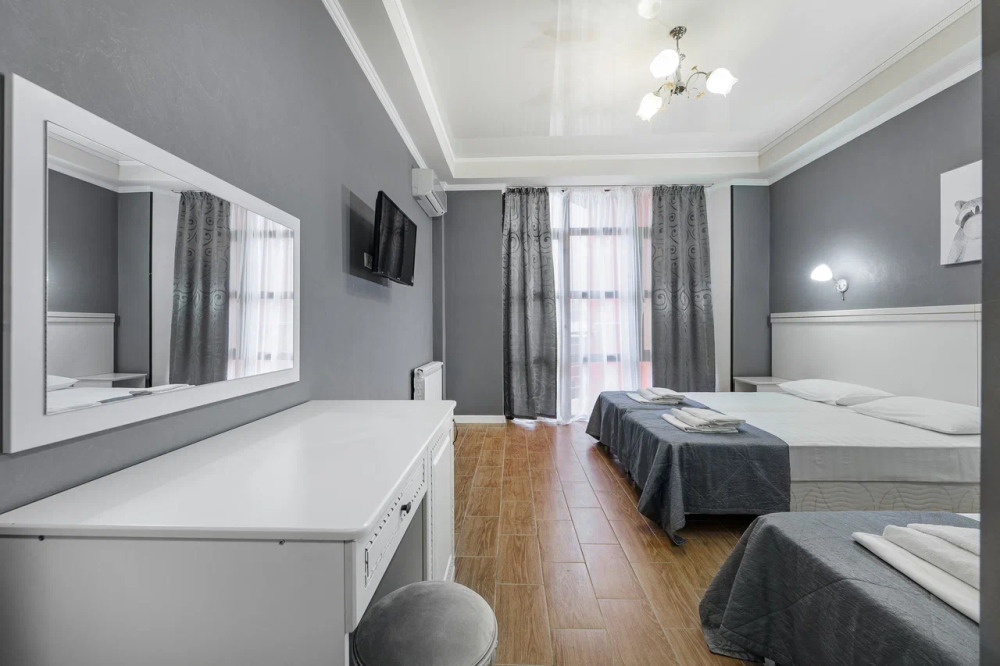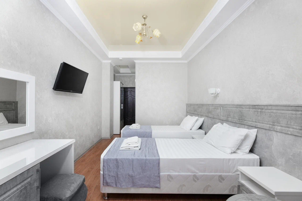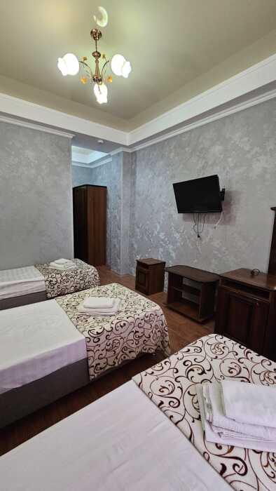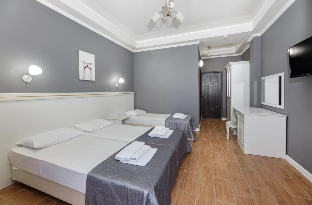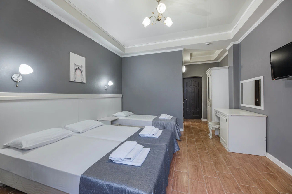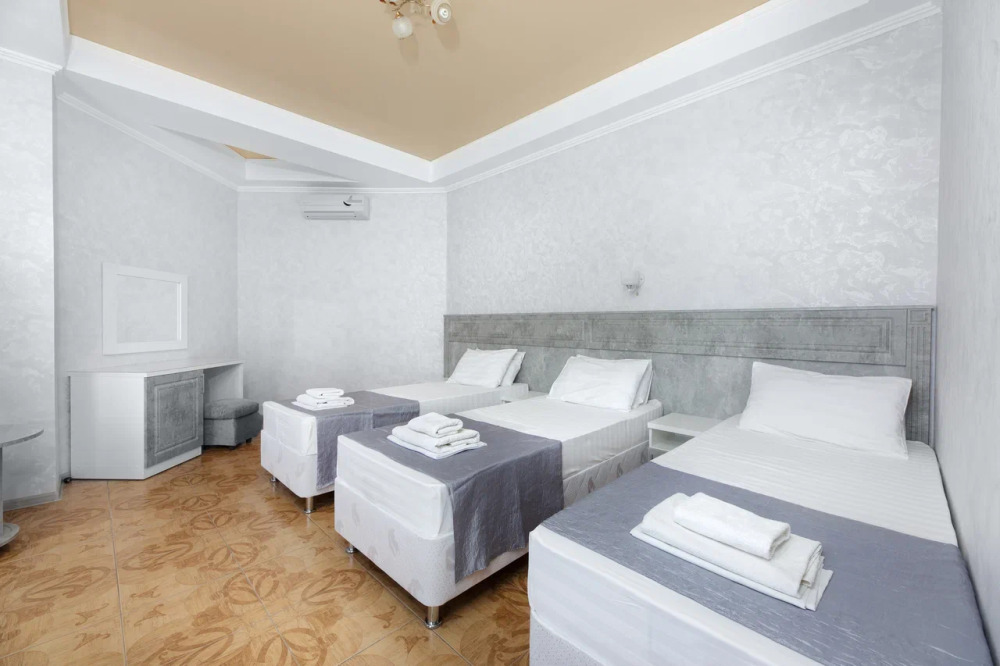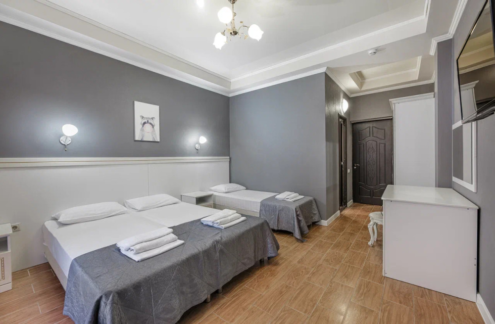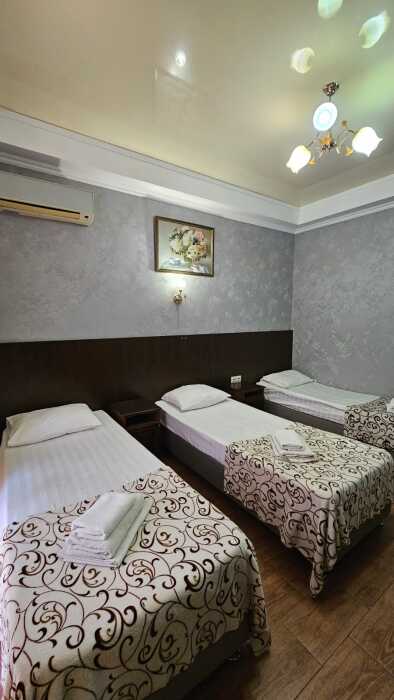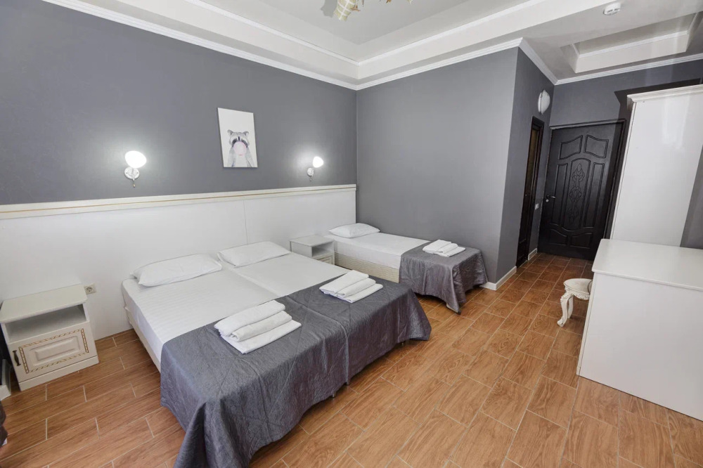 В номере могут быть установлены 3 отдельные или двухспальная и односпальная кровати.
