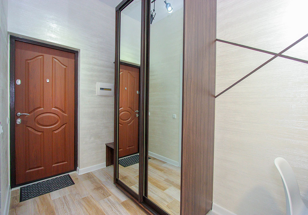 Установлена новая мебель: двухспальная кровать, диван, вместительный шкаф-купе, кухонный гарнитур, обеденный стол, дамский столик, балконная мебель( деревянные стол и стулья).