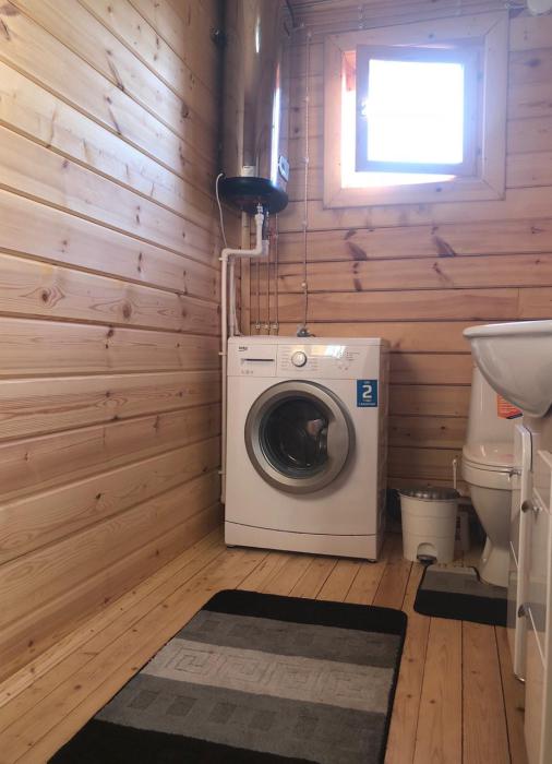Второй этаж - 2 спальни и санузел со стиральной машиной. В первой спальне: двуспальная кровать; во второй спальне: двуспальная кровать и диван-кровать. Спальни изолированы, в каждой комнате стоят сплит-системы и тв.