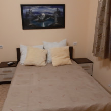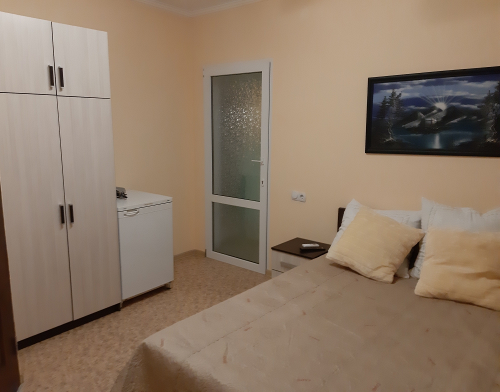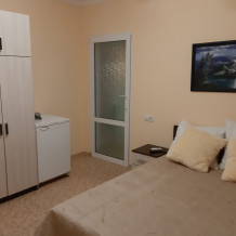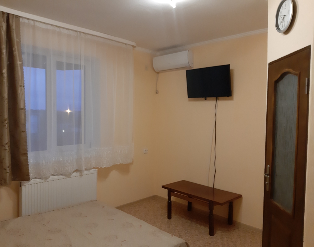 Уютный номер с двумя кроватями, кондиционером, телевизором, холодильником и санузлом. Так же в номере имеется шкаф для одежды и прикроватные тумбы.