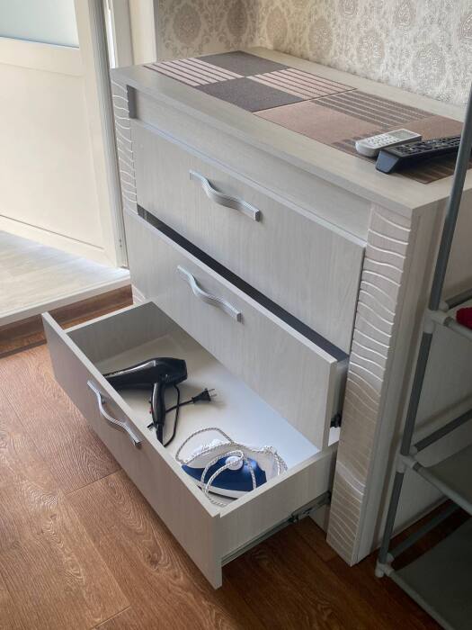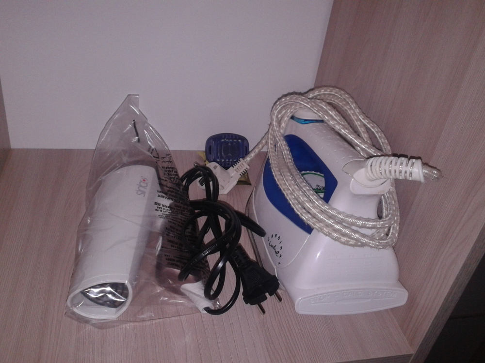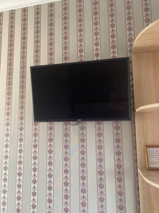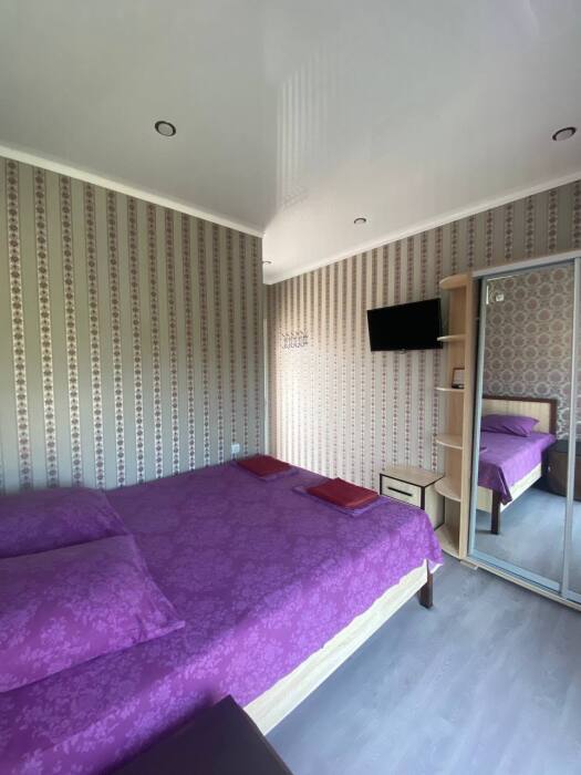 В номере: двуспальная кровать, кресло-кровать, цветной телевизор (спутниковое ТВ), кондиционер (сплит-система), утюг, гладильная доска, фен, шкаф, тумбочки, евроокна с москитной сеткой.