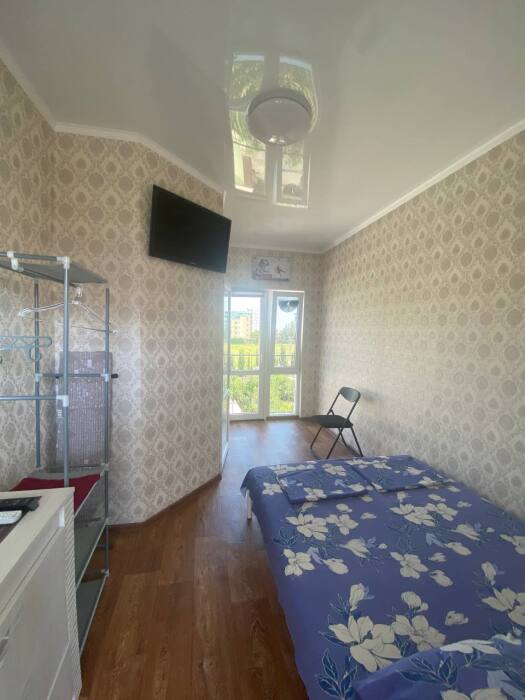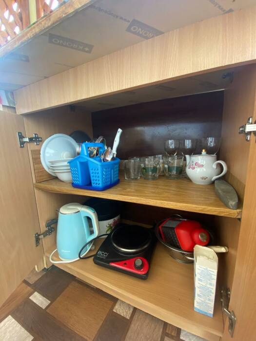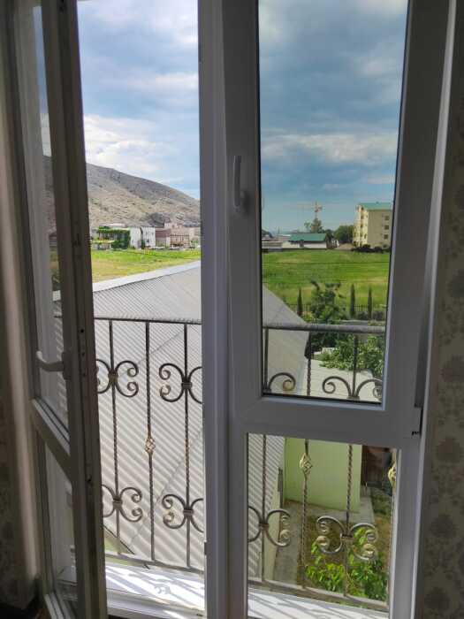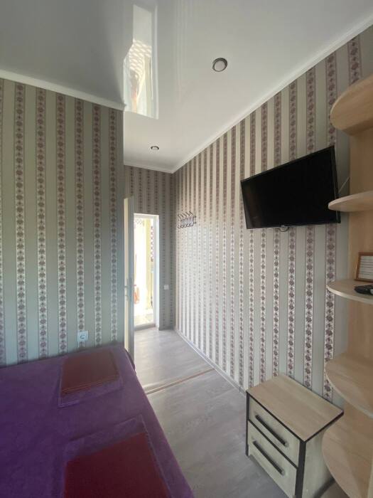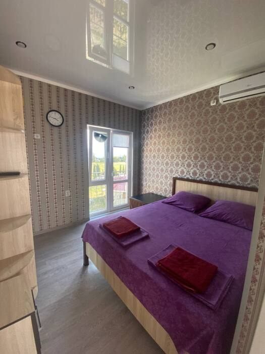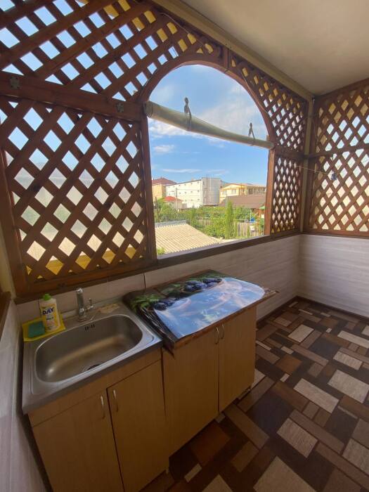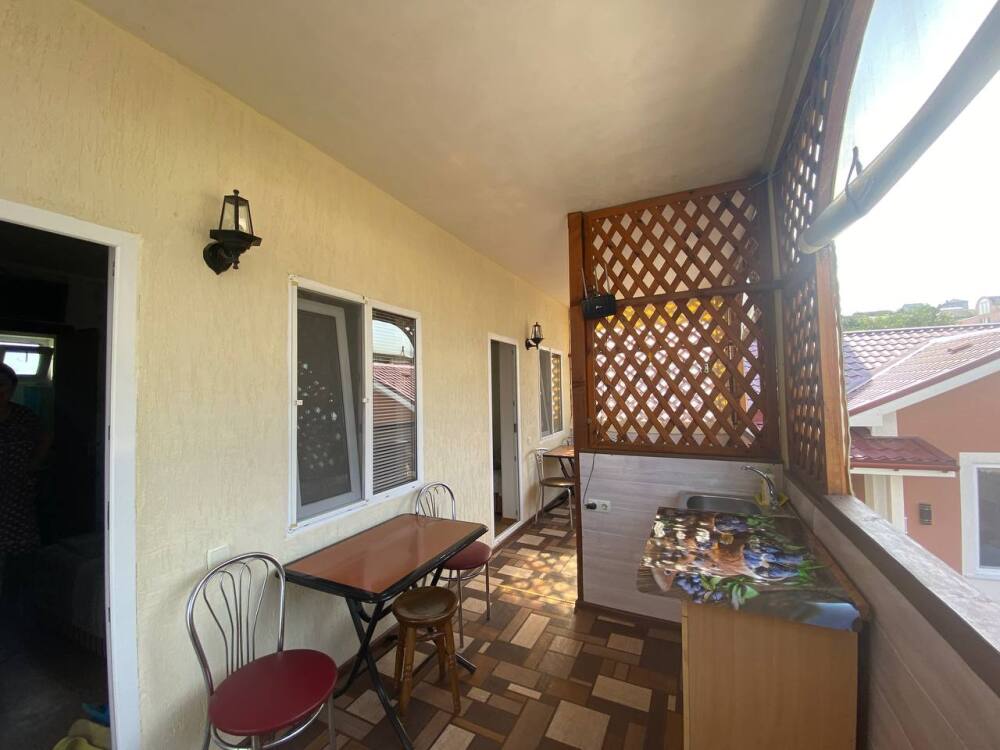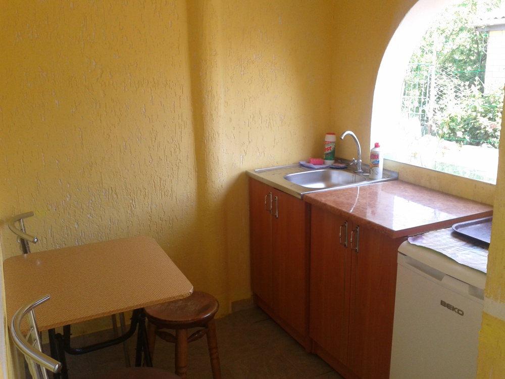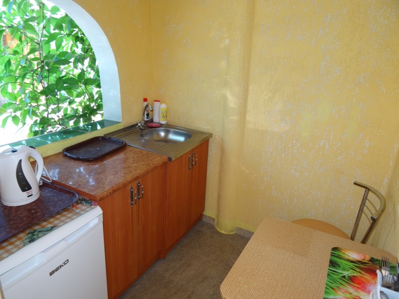 Номер находится на первом этаже. Вход в номер- автономный. Имеется своя своя автономная кухня (на свежем воздухе) со всеми кухонными принадлежностями: посуда, электроплита (одноконфорочная), электрочайник, стол, стулья, холодильник. Площадь номера 12 кв.м. + кухня 6 кв.м.