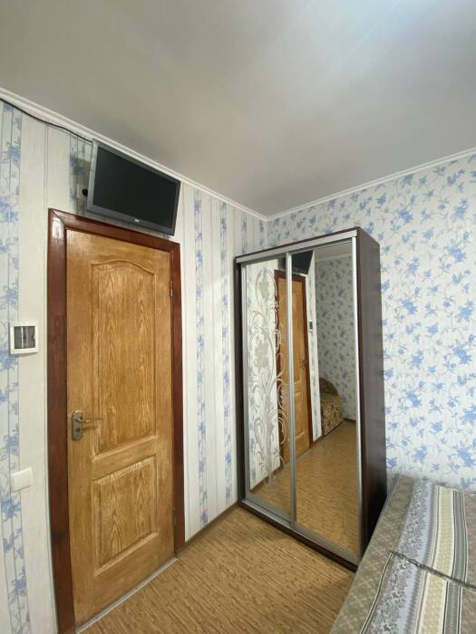 У каждого номера своя автономная со всеми кухонными принадлежностями: посуда, электроплита (одноконфорочная), электрочайник, стол, стулья, холодильник. Площадь номера 12 кв.м. + кухня 6 кв.м.