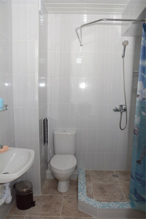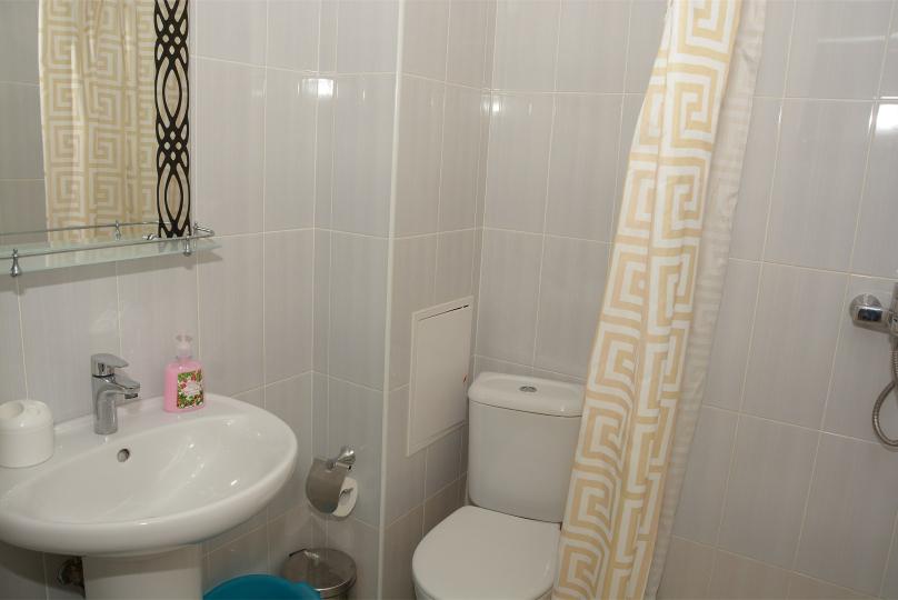 Комфортабельная студия. Оснащение: 1 двуспальная кровать, шкаф, вешалки для верхней одежды, зеркало, стол с 4 стульями, кондиционер, ТВ. Доп. место представлено раскладным креслом. Оборудованная кухня: плита, вытяжка, раковина, микроволновка, набор посуды и столовых приборов. Ванная комната представлена с/у с душем.