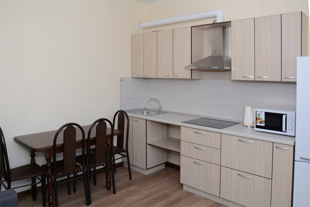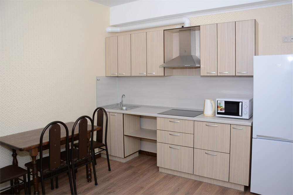 К услугам комфортабельные апартаменты с личной кухней, оборудованные сплит-системой, ЖК-телевизорами, микроволновой печью, холодильником, феном. В некоторых номерах есть балкон.