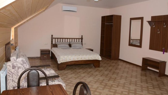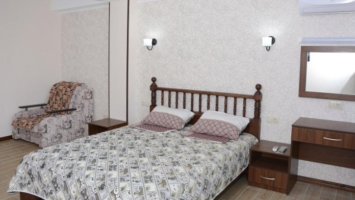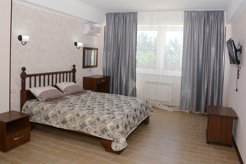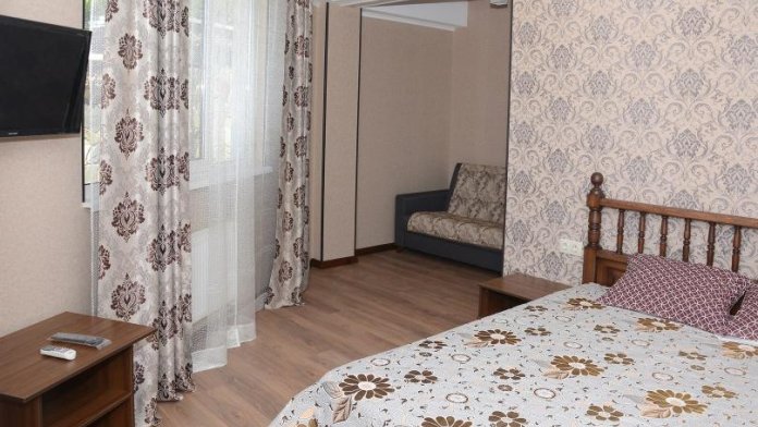 Комфортабельные двухкомнатные апартаменты с балконом. В спальне: 1 двуспальная кровать, прикроватные тумбы, зеркало, журнальный столик, кондиционер, ТВ. В кухне-гостиной оборудованная кухонная зона (плита, вытяжка, раковина, микроволновка, холодильник, эл. чайник, набор посуды и столовых приборов) и обеденная зона (стол и 4 стула), раскладной диван. Ванная комната представлена с/у с душем.