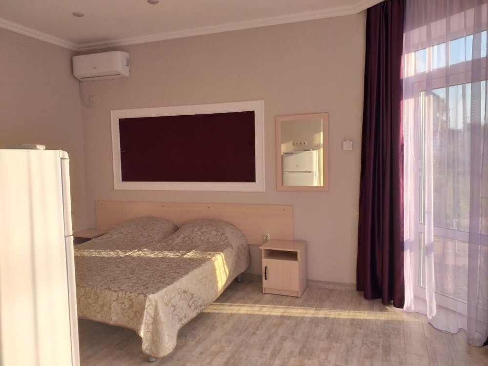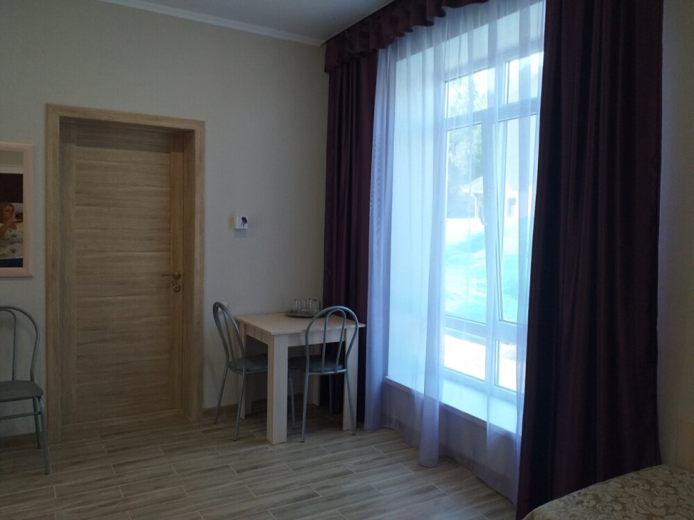 Номер расположен на 2 этаже, имеет 2 входа. Один основной с лестницы и большое окно с выходом на балкон, откуда открывается вид на море и во двор.