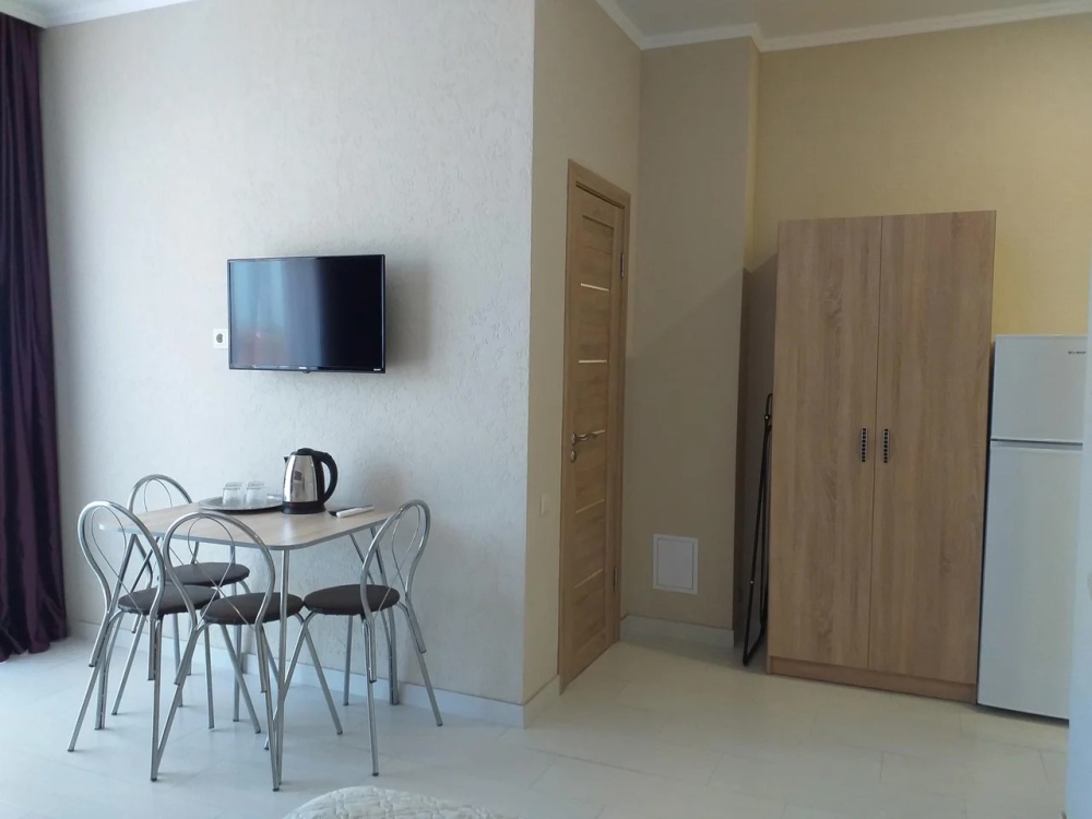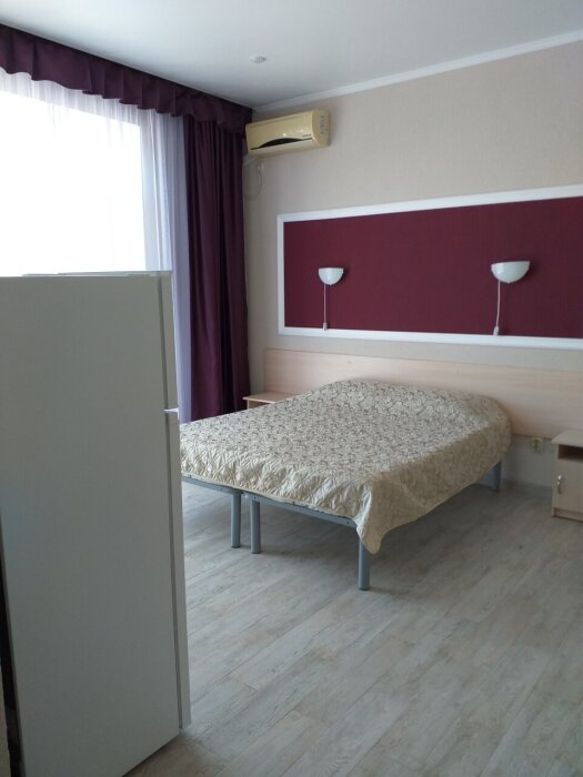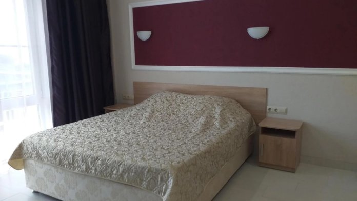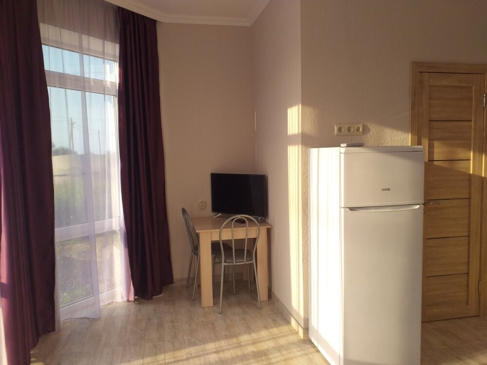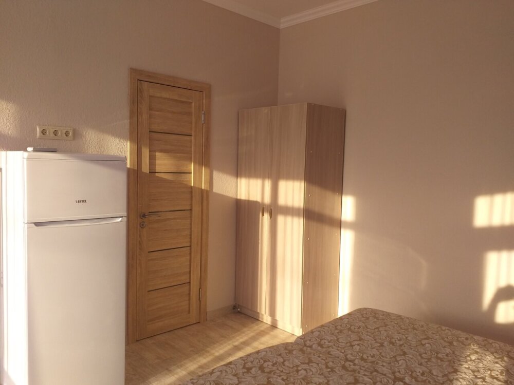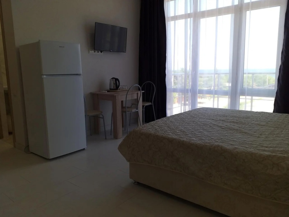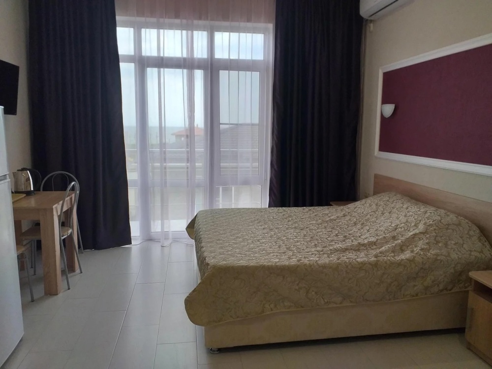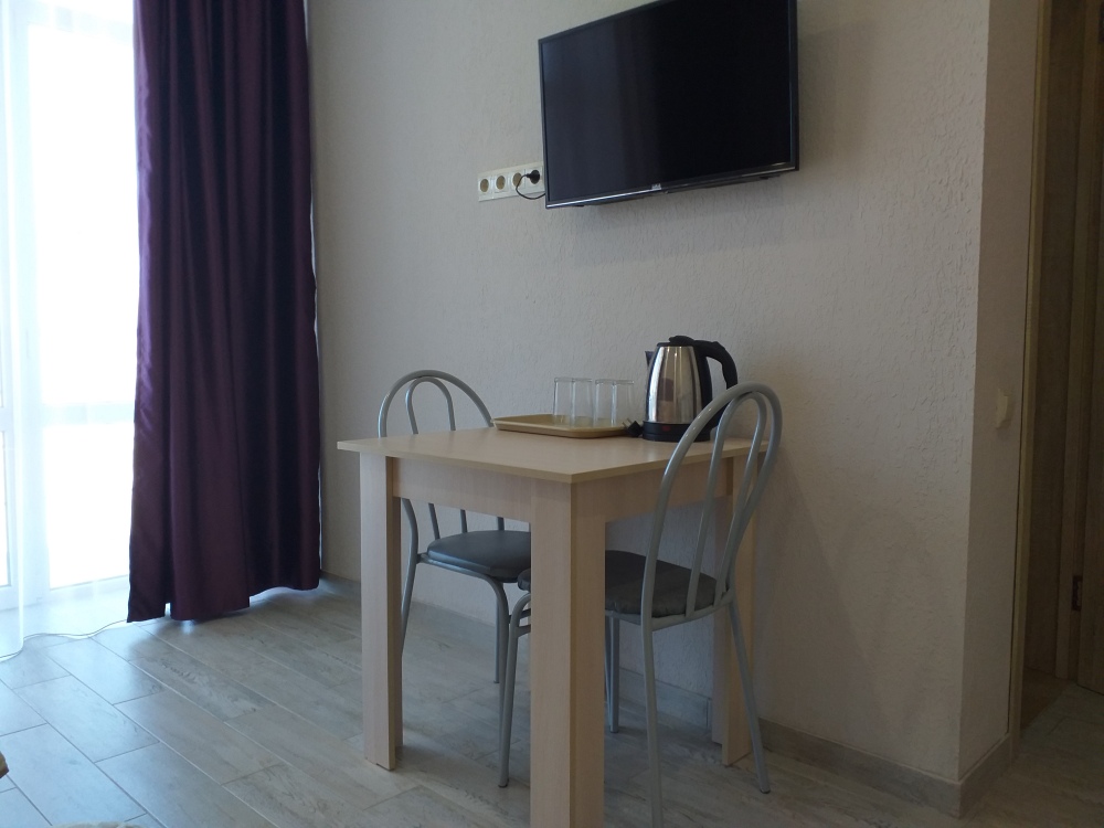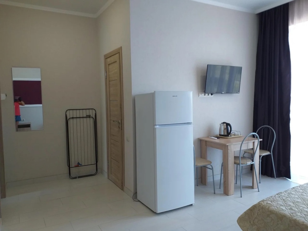 Номер расположен на 3 этаже, имеет 2 входа. Один основной с лестницы и большое окно с выходом на балкон, откуда открывается вид на море и во двор.