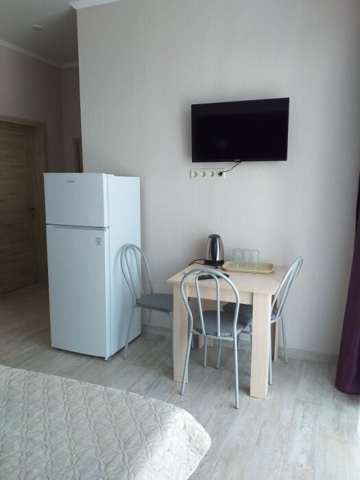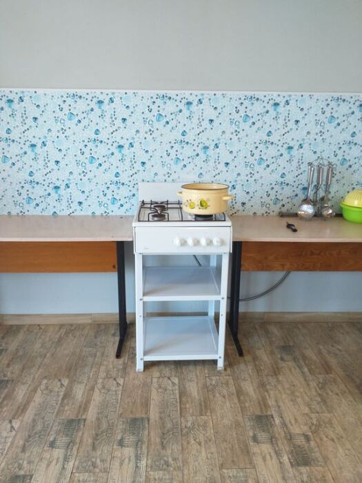 Из комнаты есть дополнительный выход. Рядом расположена общая кухня.