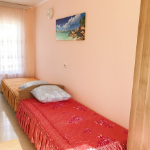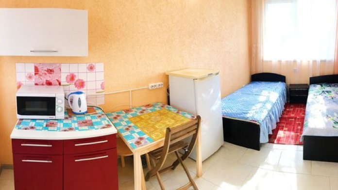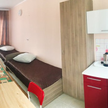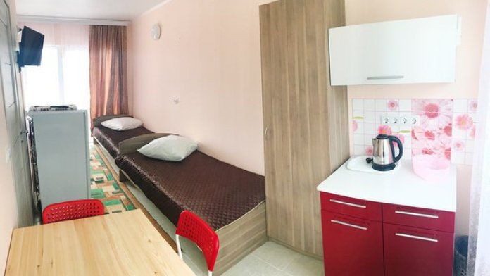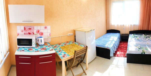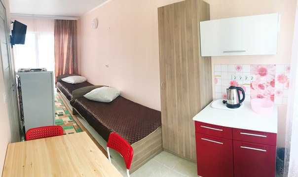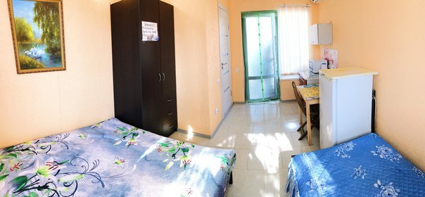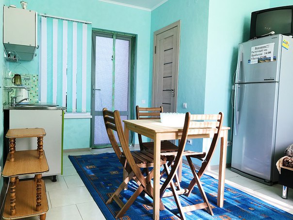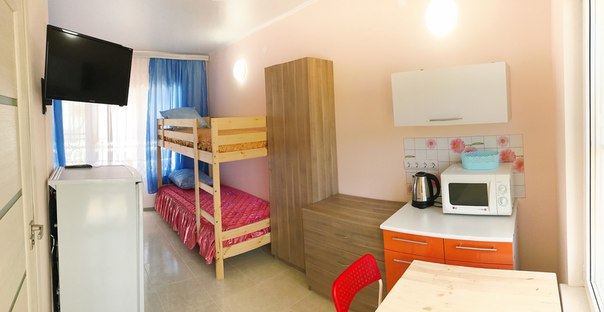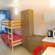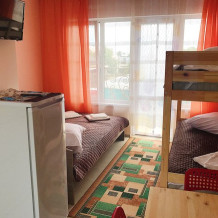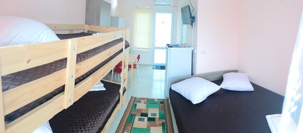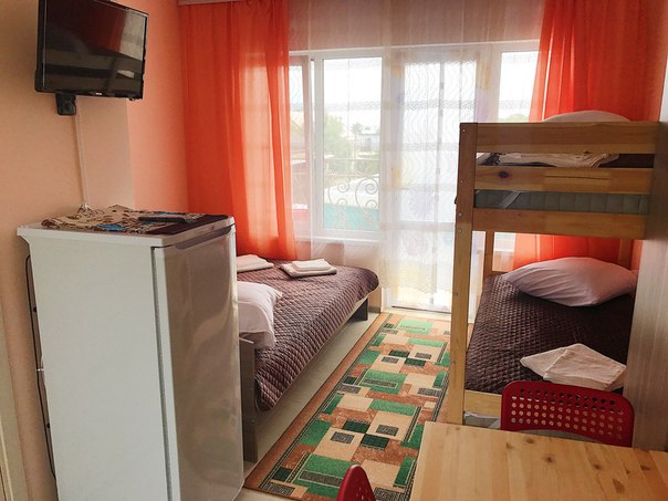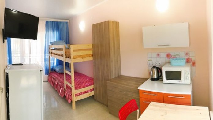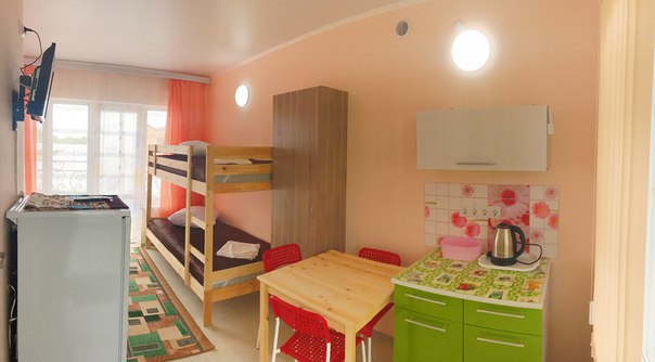 « Номер 4» - это однокомнатный номер, рассчитан на 4 человека (одна двухспальная кровать и одна двухярусная) В номере есть все , что нужно для комфортного отдыха: мини-кухня, холодильник, телевизор, шкаф, микроволновая печь, электроплитка, чайник, душ, туалет, сплит-система, Wi-Fi (оптоволокно).