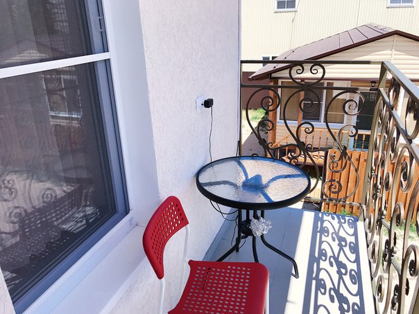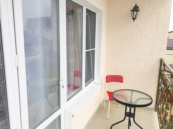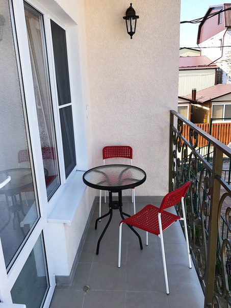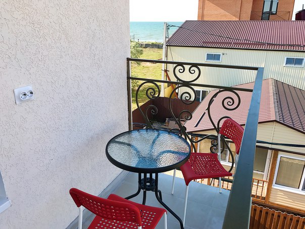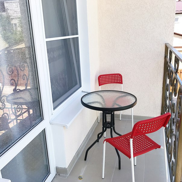 В каждом номере имеется собственный балкон со столиком и стульями.