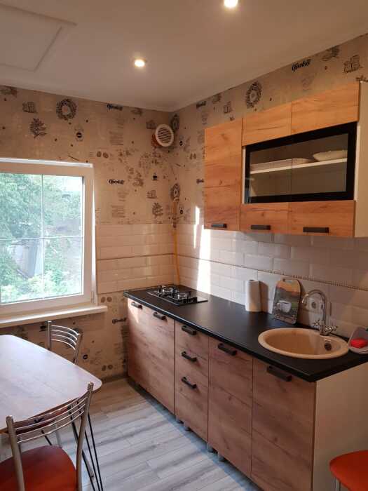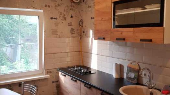 Двухкомнатный номер с отдельной кухней, двумя односпальными и одной двуспальной кроватью.
