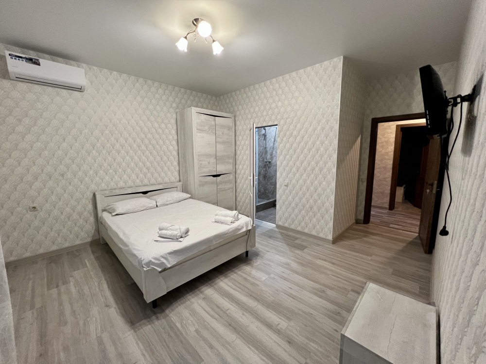 Номера для 2,3,4 гостей, в номерах: ж/к телевизор, кондиционер, холодильник, санузел в номере. На террасе- летняя кухня со всем необходимым для приготовления пищи. Парковка и беспроводной интернет. Трансфер предоставляется за отдельную плату.