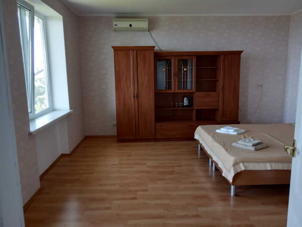 Просторный четырехместный номер расположен на втором этаже. В номере свой санузел с душевой кабиной, удобная двуспальная кровать, шкаф, туалетный столик с зеркалом, комод. В номере есть также полуторная кровать. при необходимости предоставляется дополнительное спальное место. Большой красивый балкон выходит во внутренний дворик, весь в зелени. Кипарисы, сосны, кедр, розы, розмарин насыщают воздух непередаваемым ароматом. С балкона также есть боковой вид на море!
