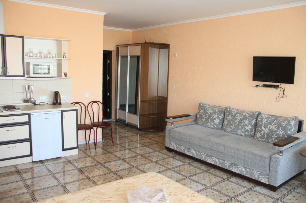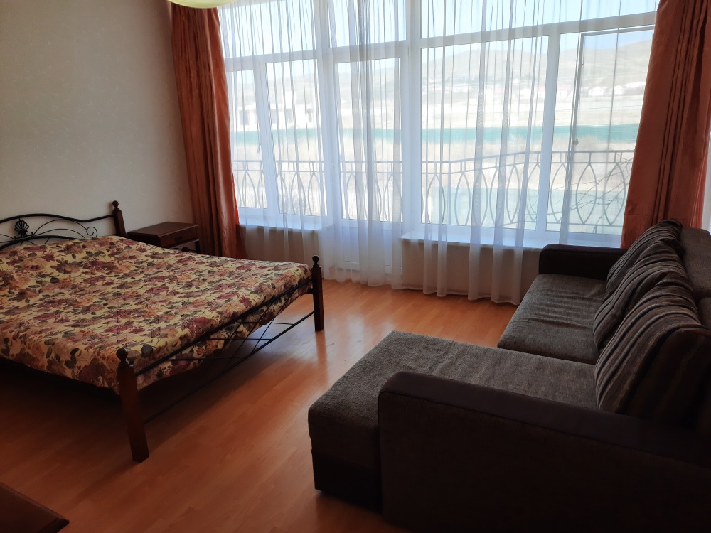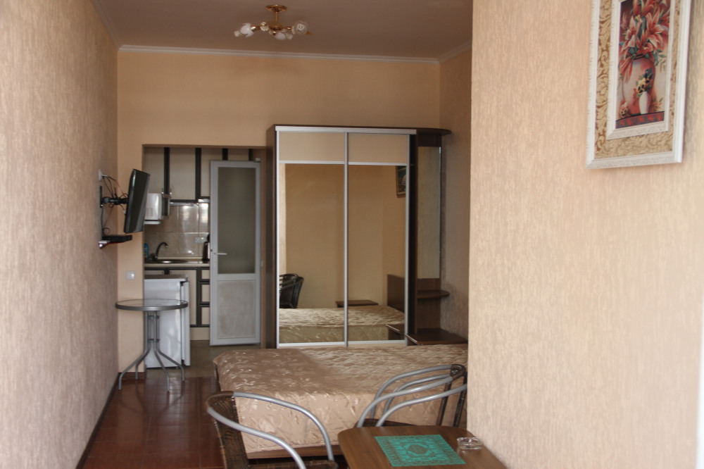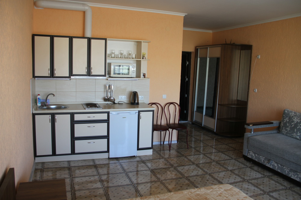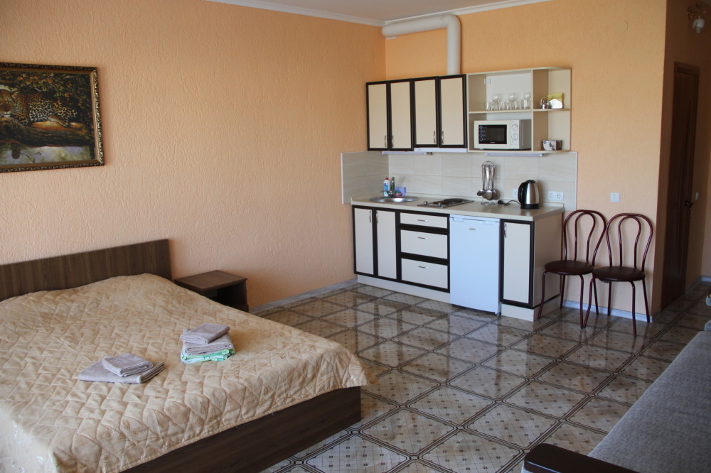Предлагаю шикарный четырехместный номер, с видом на море. Отдельно балкон со столиком, санузел. Рядом кухня на два номера со стиральной машинкой, микроволновкой, чайником, холодильником, плитой, необходимым комплектом посуды.