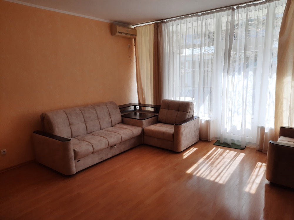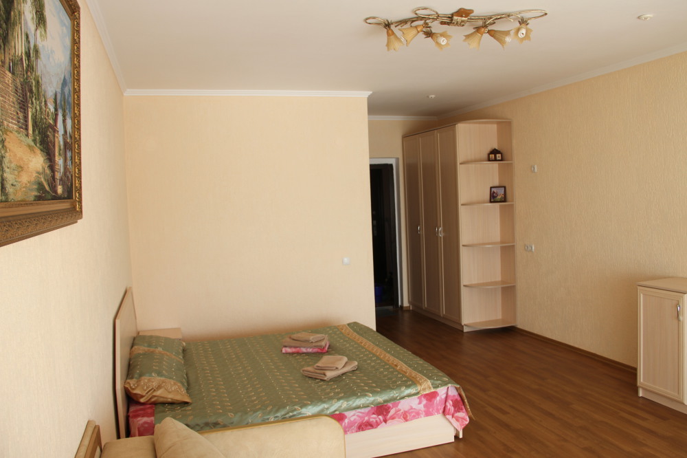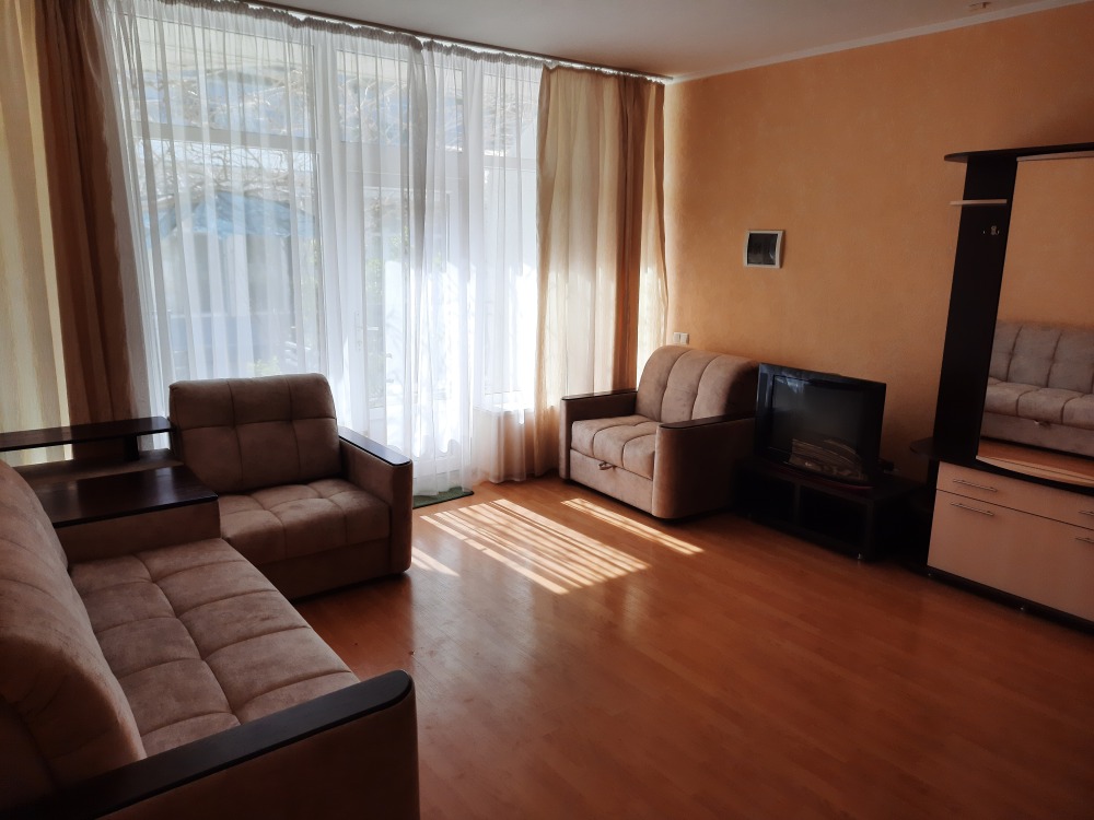 Двухспальная кровать с прикроватными тумбочками, удобный диван. ЛЕД телевизор.
