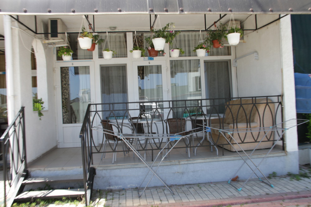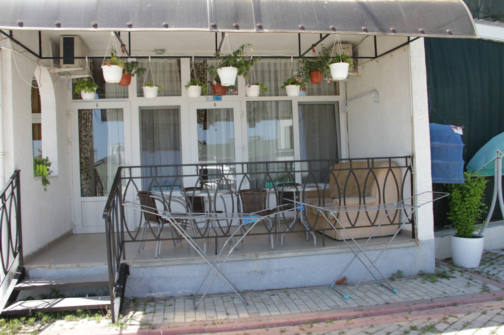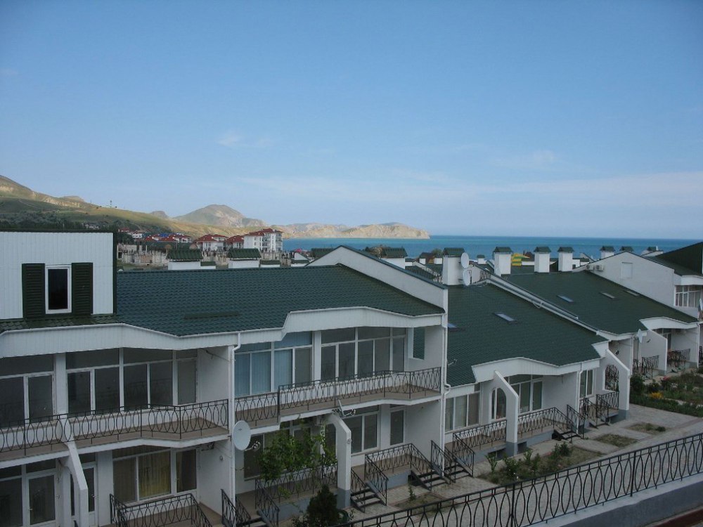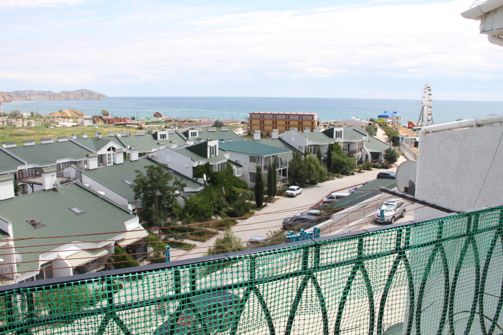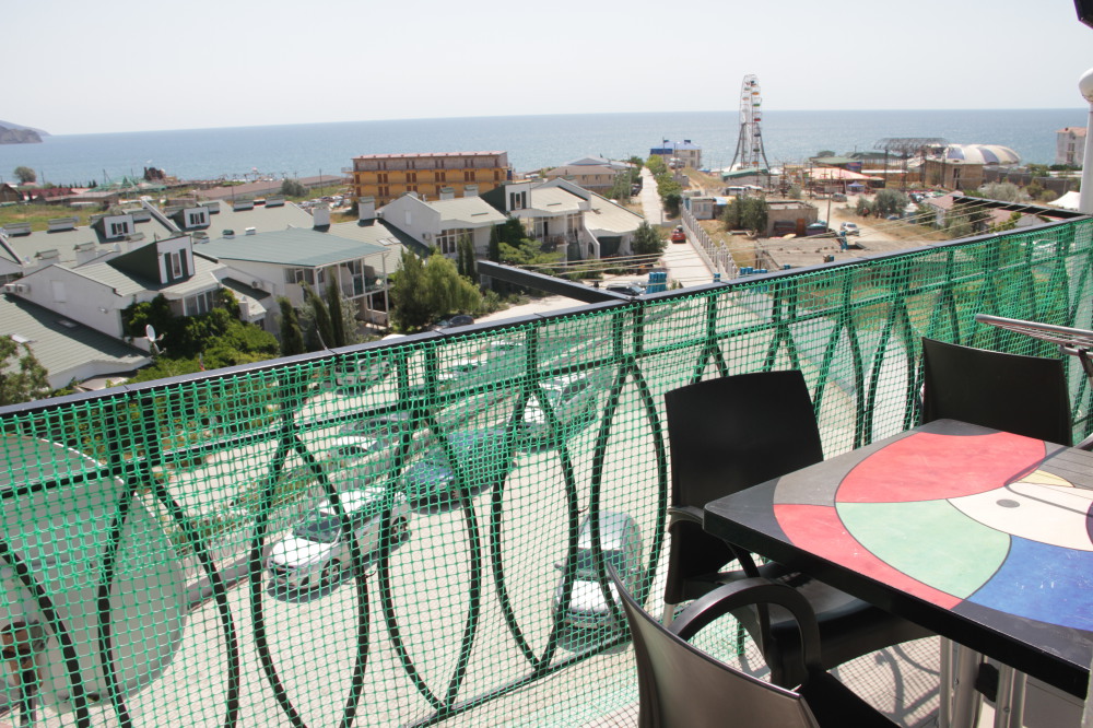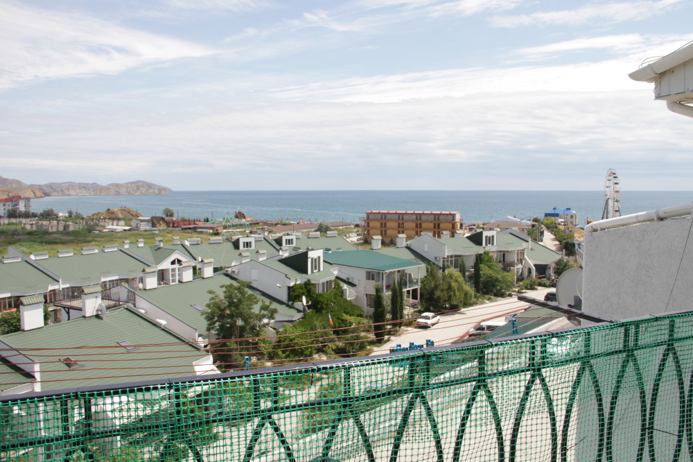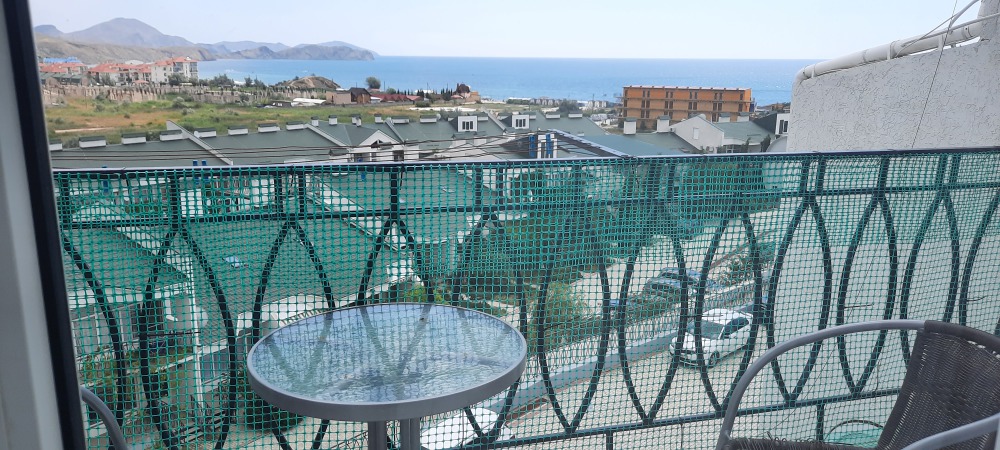 Кафе, магазин. Из номеров открывается прекрасный вид на море или горы, справа-потухший вулкан Кара-Даг, слева- мыс Хамелеон.
