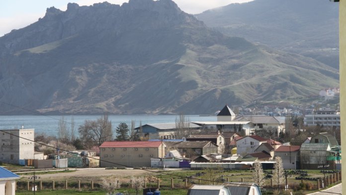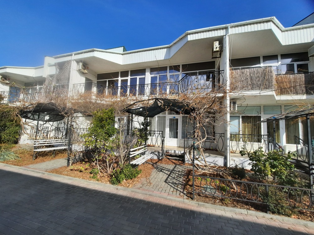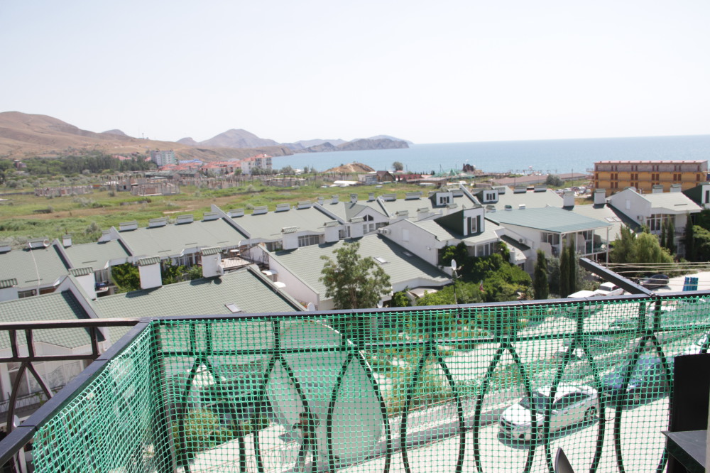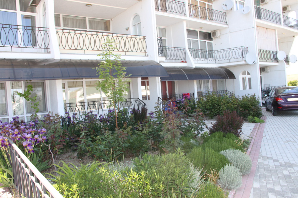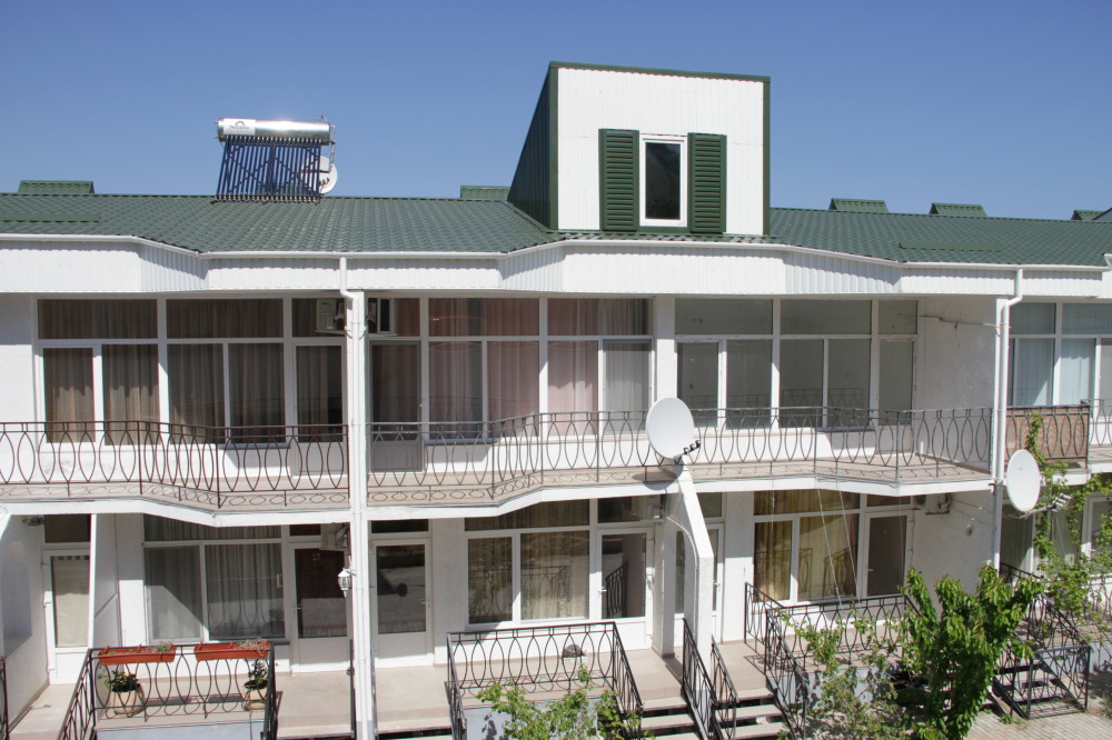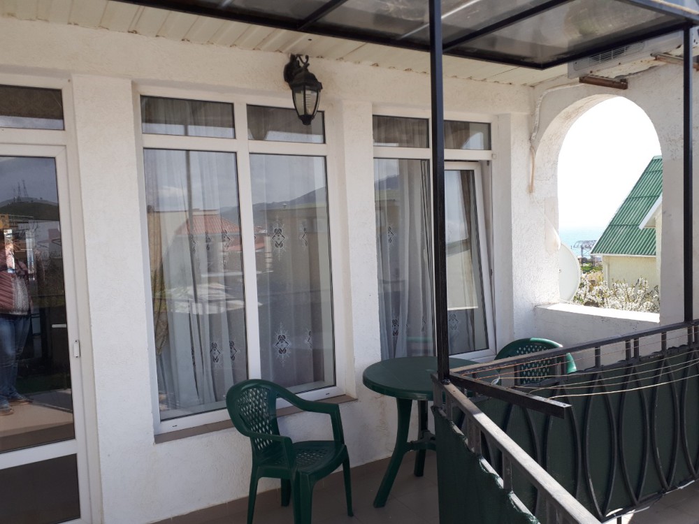 Кафе, магазин. Из номеров открывается прекрасный вид на море или горы, справа-потухший вулкан Кара-Даг, слева- мыс Хамелеон.
