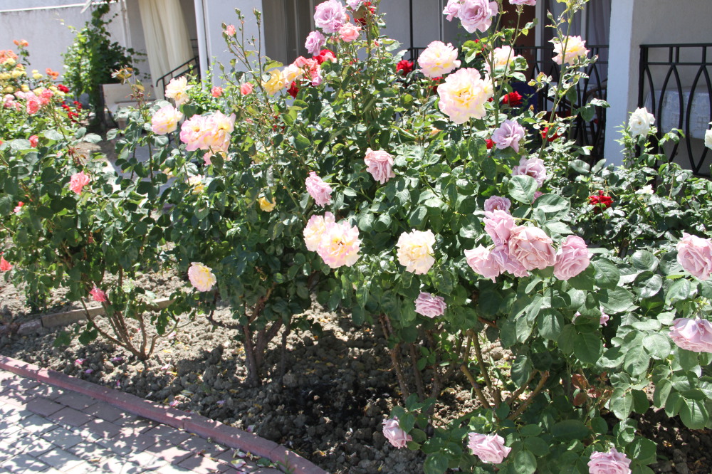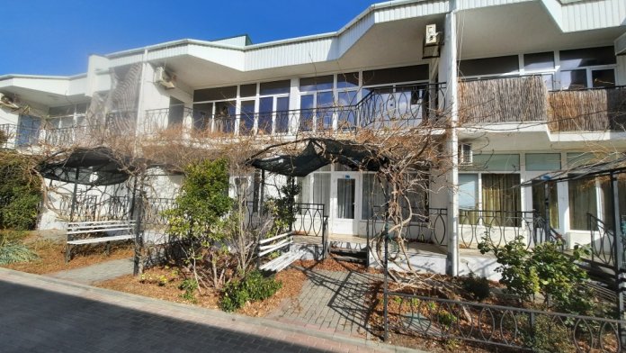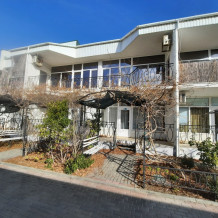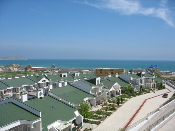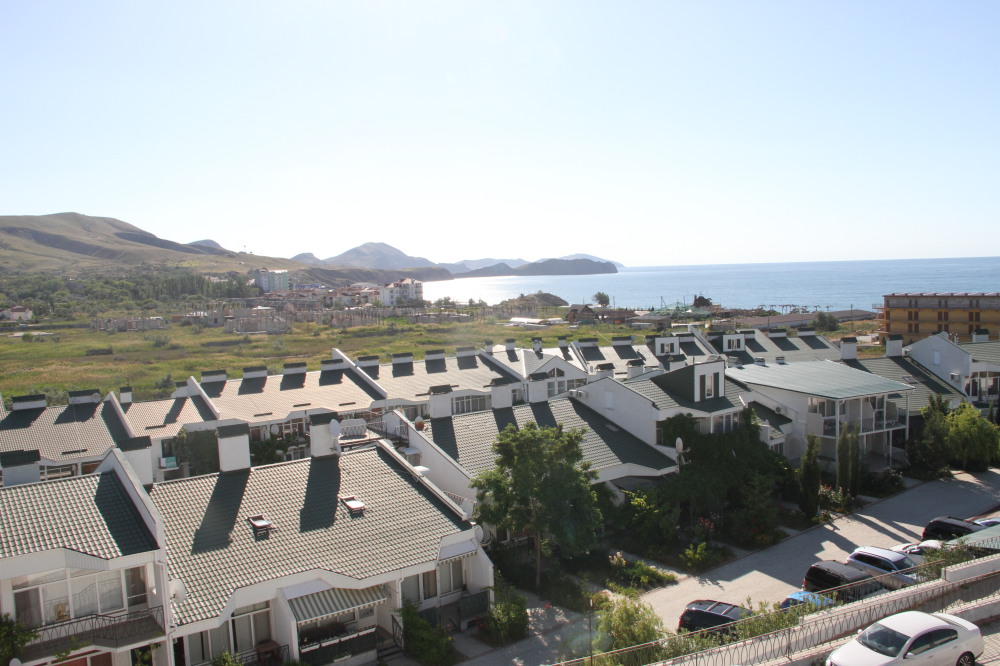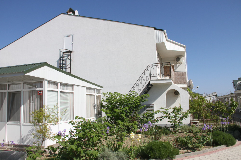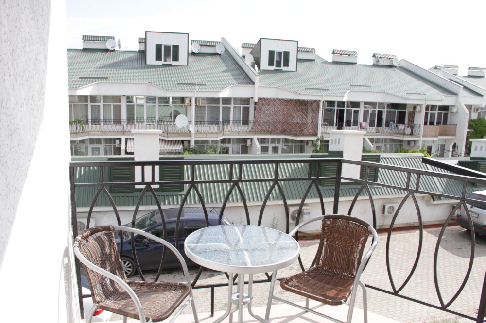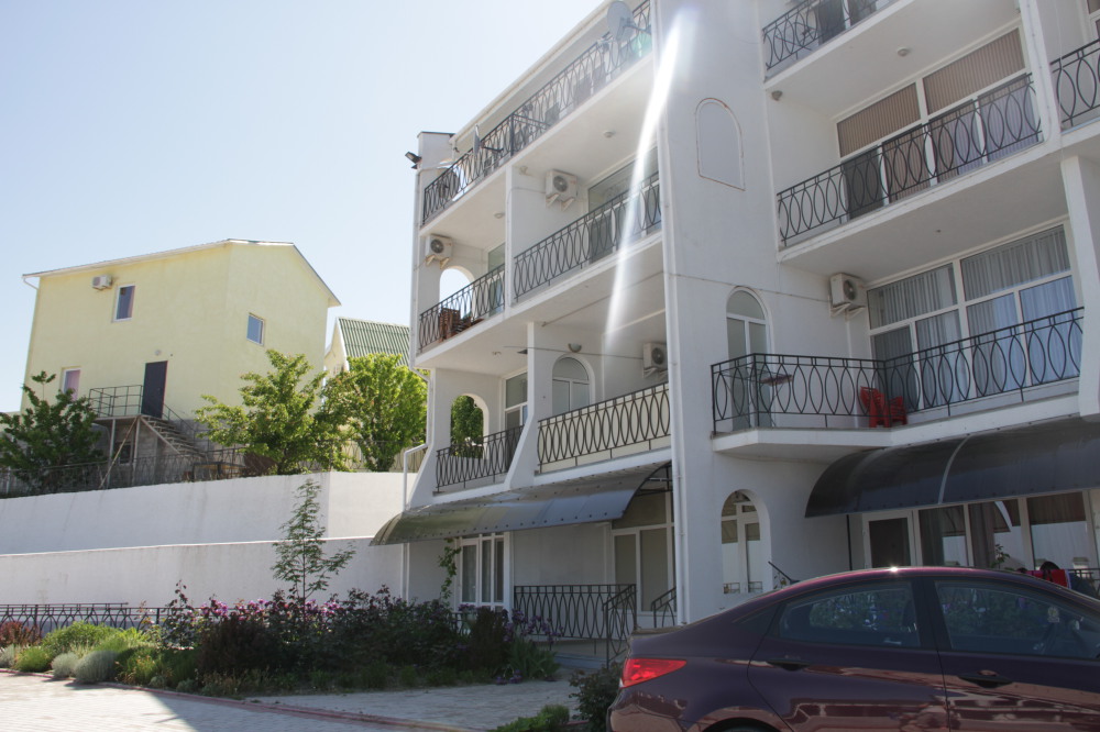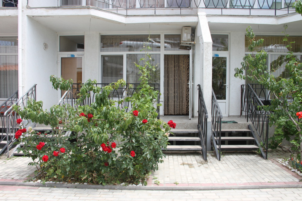 Кафе, магазин. Из номеров открывается прекрасный вид на море или горы, справа-потухший вулкан Кара-Даг, слева- мыс Хамелеон.