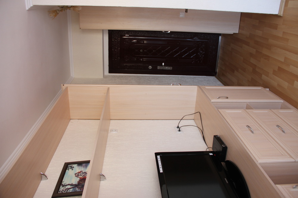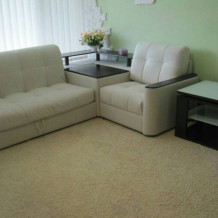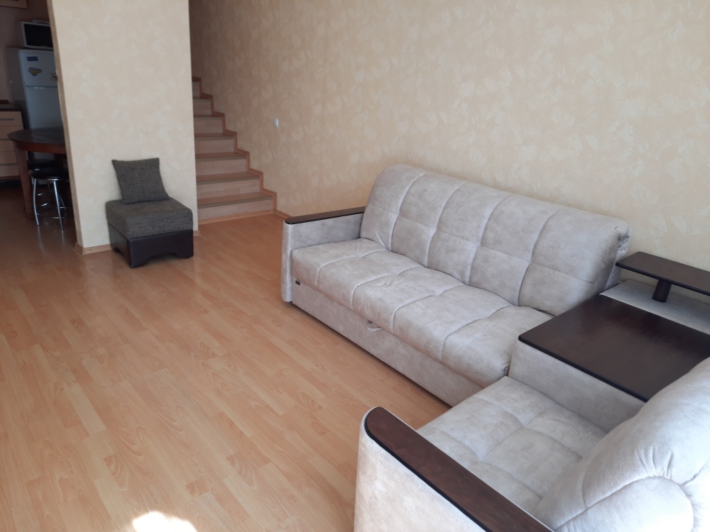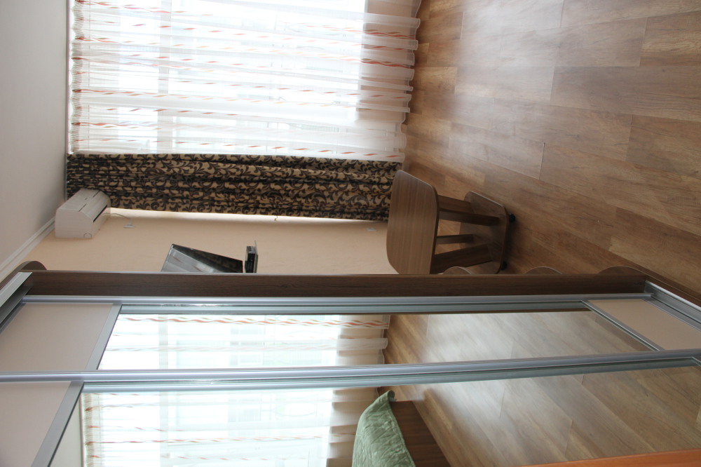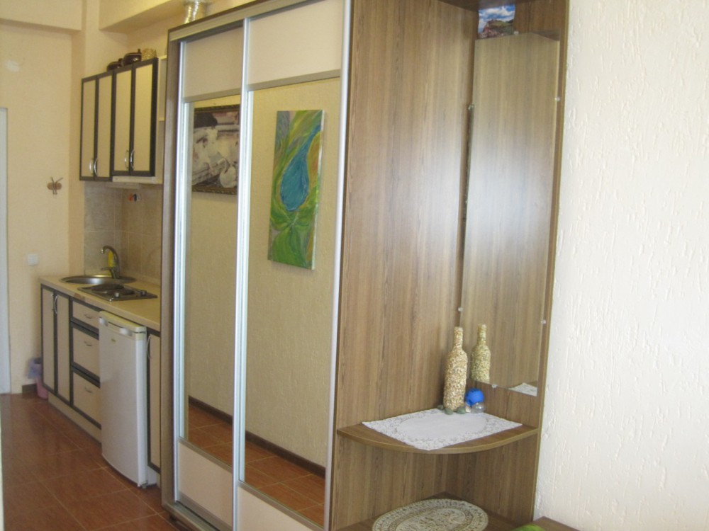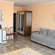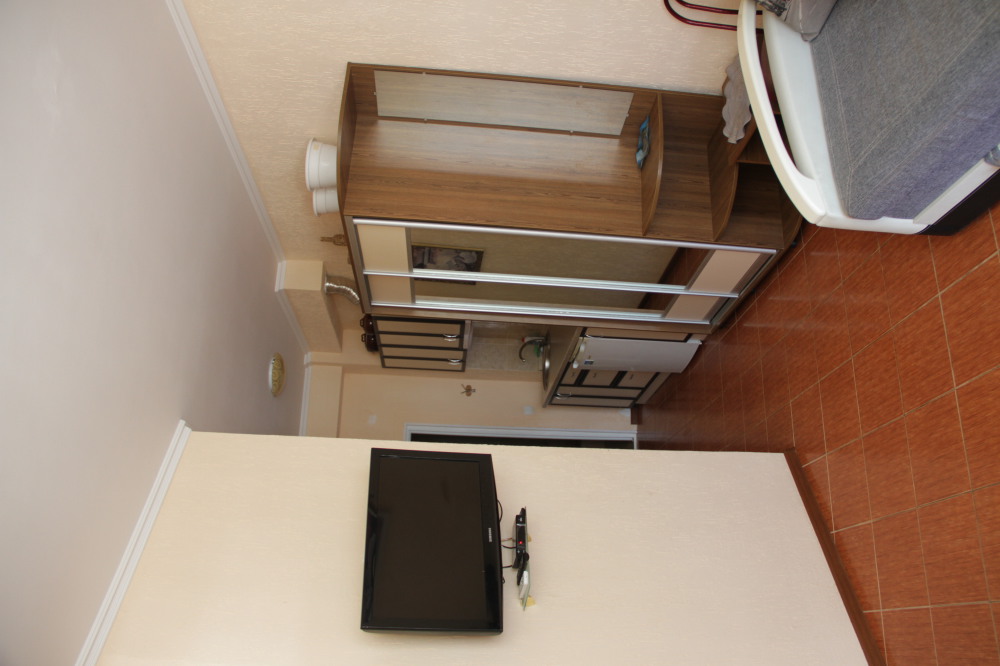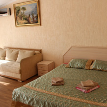 В номере: раскладной диван с прикроватными тумбочками. Шкаф-купе, журнальный столик.
