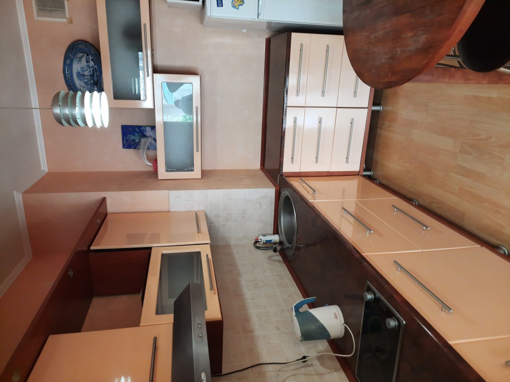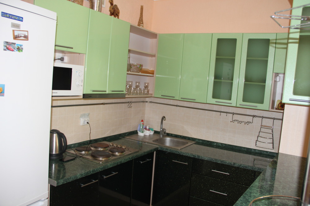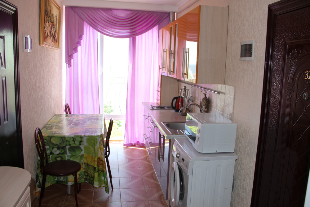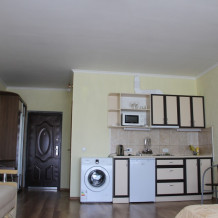 Кухня: имеет выход из двух номером. Оборудована: электроплитой, микроволновкой. Имеется необходимая посуда, обеденный столик, вместительный холодильник, стиральная машина.