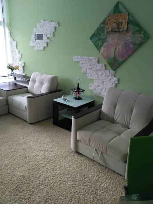 В комнате - диван, раскладное кресло.