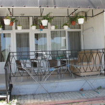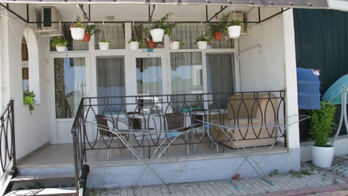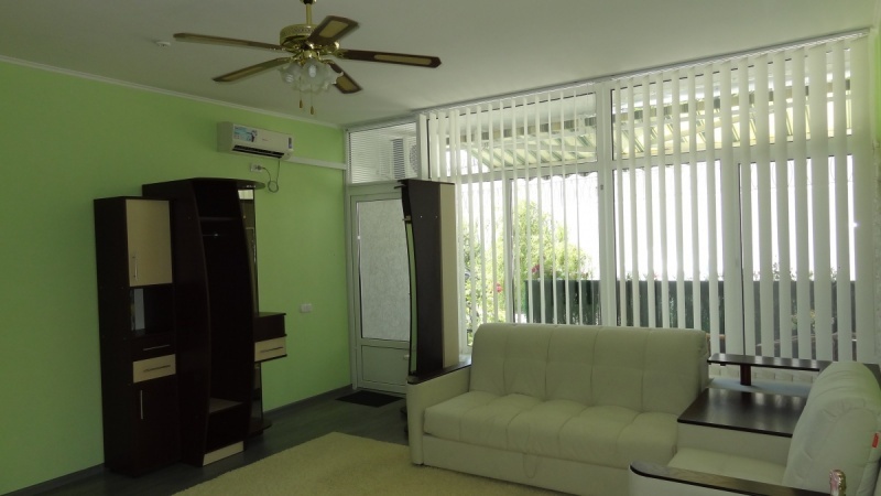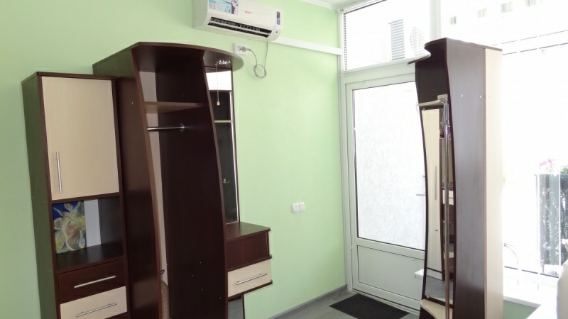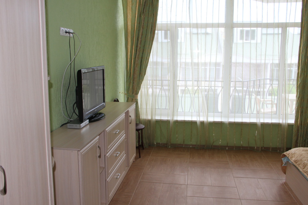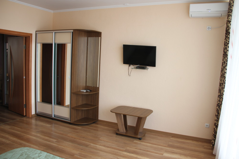 В номере плоский телевизор и кондиционер. Выход с номера на терраску с видом на море. На которой можно покушать. Номер находится на первом этаже. Терраса на два номера.