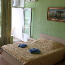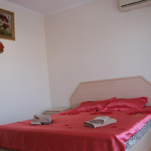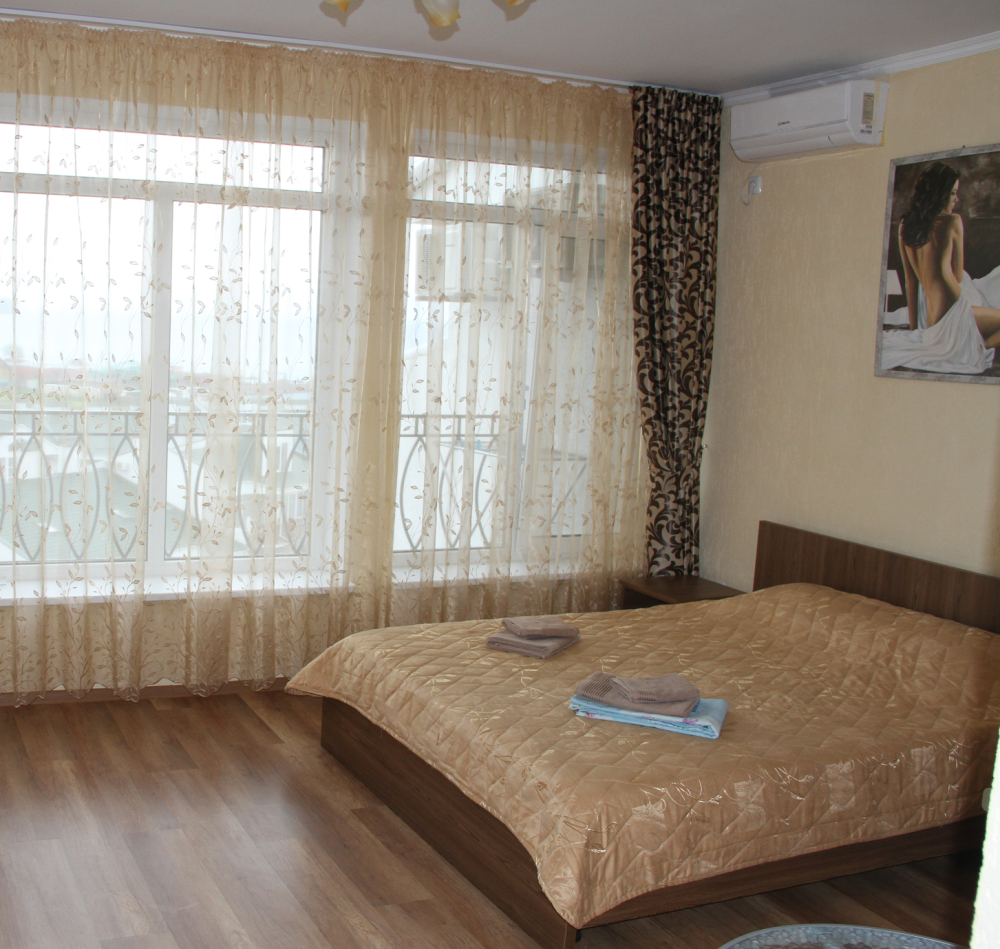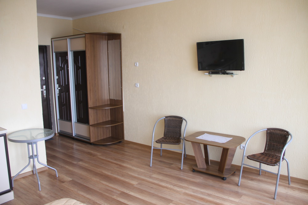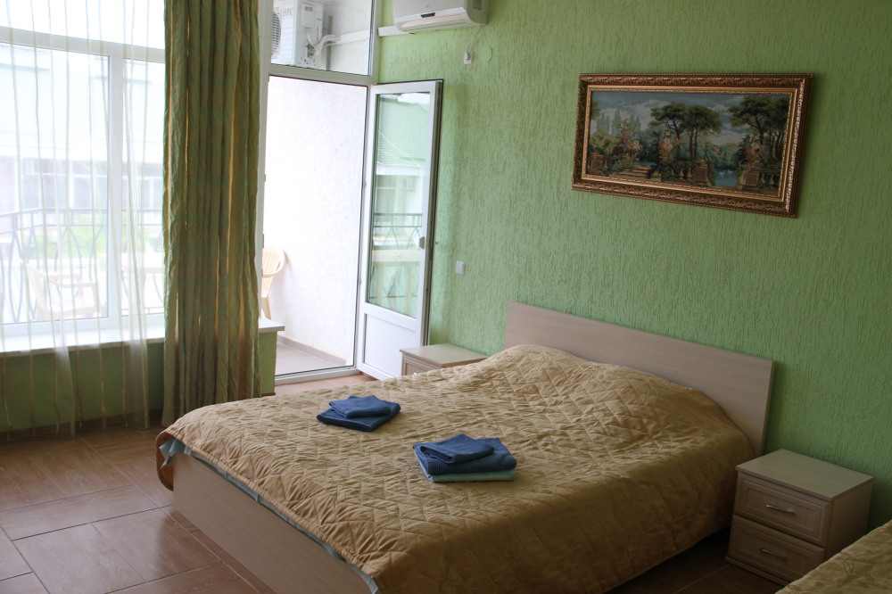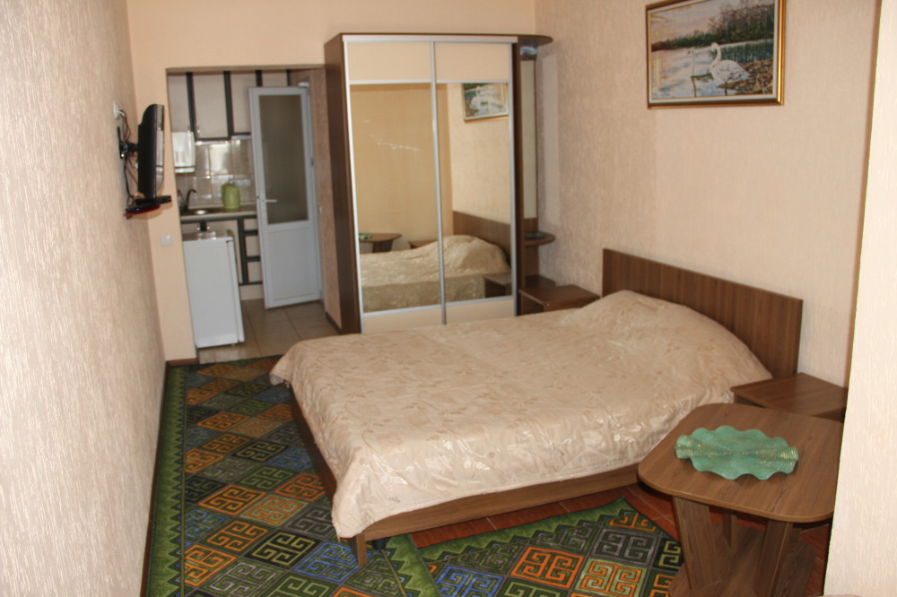 Для Вашего отдыха предлагаются комфортабельные 2-х, 4-х местные номера со всеми удобствами. Каждый номер оборудован: ЖК телевизором 32» (спутниковое или эфирное телевидение), кондиционером, холодильником, бойлером, эл. чайником, утюгом и гладильной доской, двуспальной кроватью с прикроватными тумбочками, столом, санузлом.