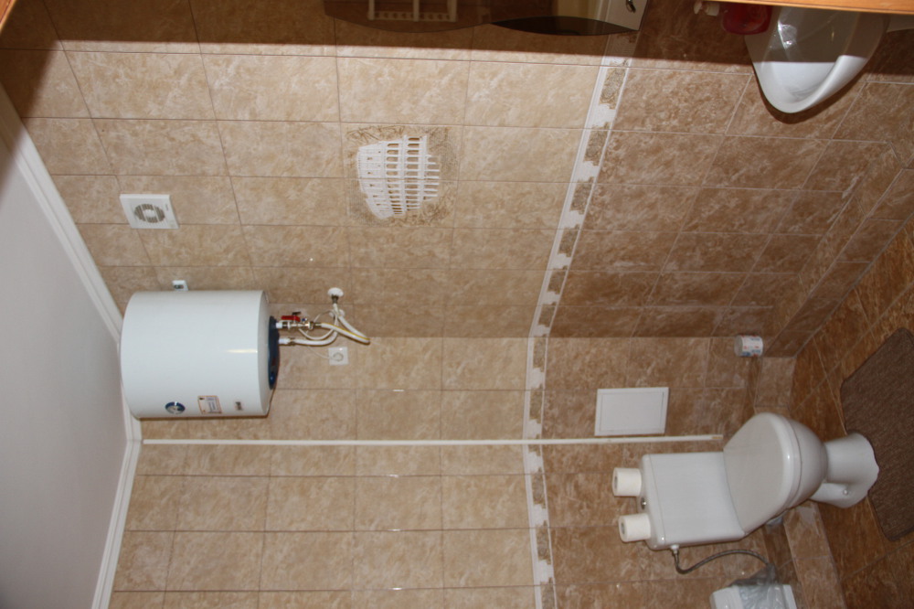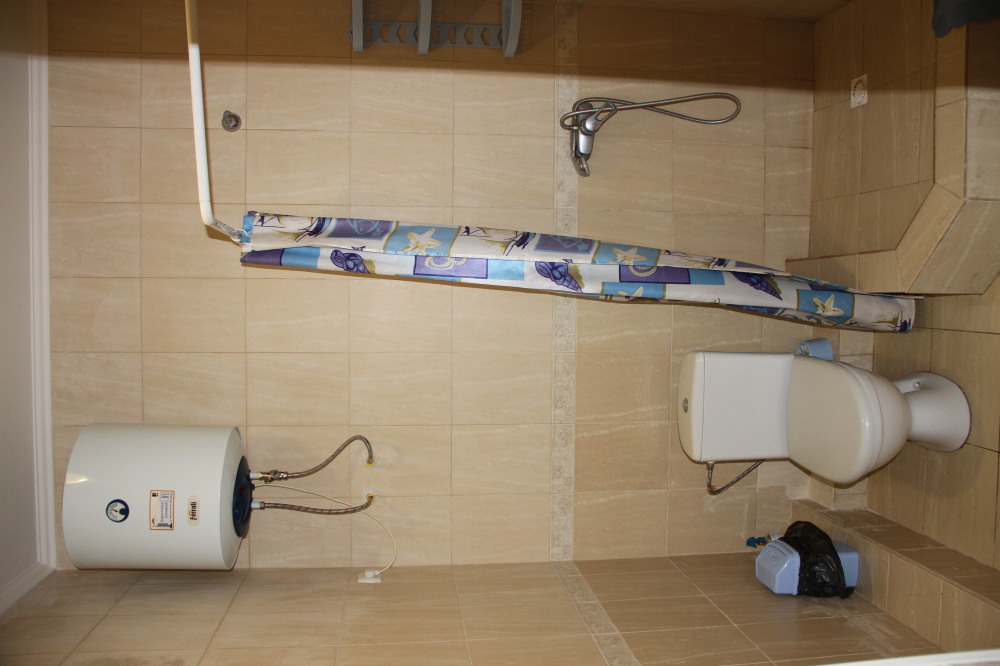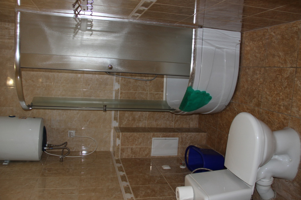 Санузел оборудован душевой кабинкой, умывальником, унитазом, бойлером.