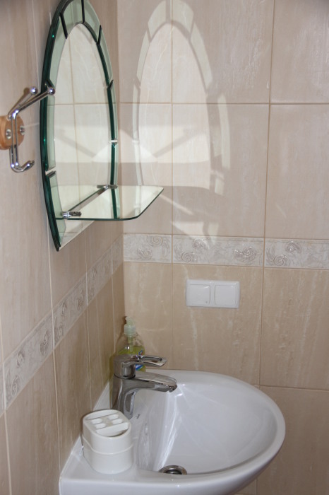В номере отдельный санузел с душевой кабинкой. Горячая и холодная вода постоянно.