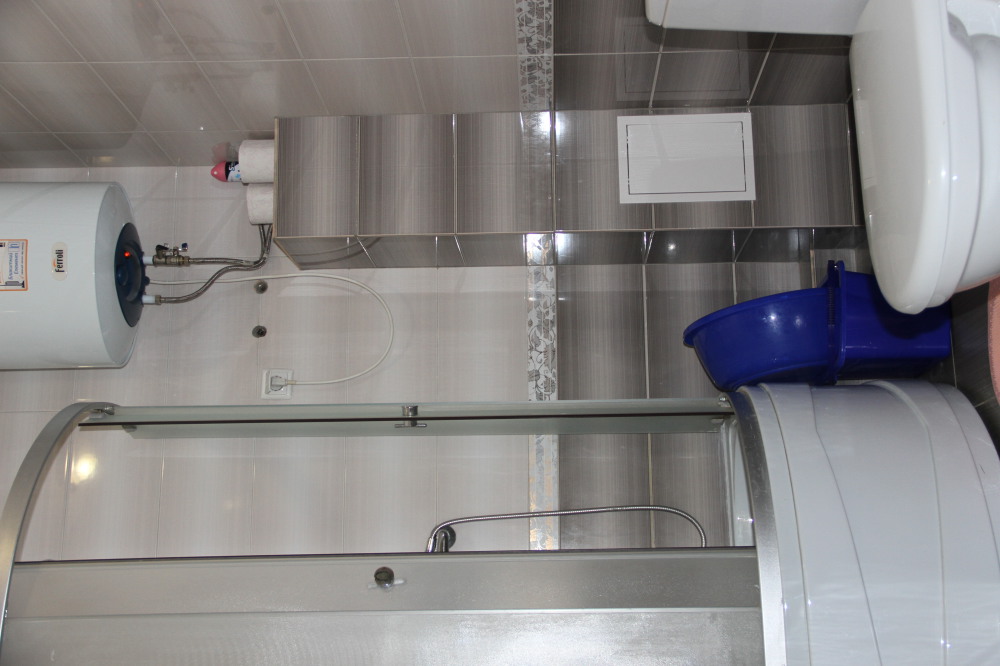 Санузел оборудован душевой кабинкой, умывальником, унитазом. Горячая и холодная вода постоянно, установлен бойлер.