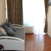 В меньшей комнате, установлен диван, односпальная кровать. Выход с номера на второй балкон.