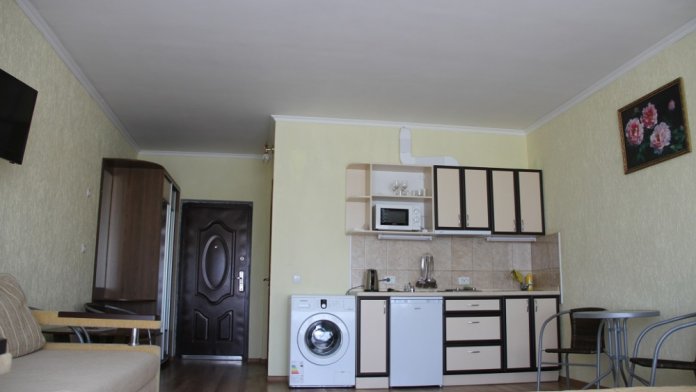 Номер состоит из двух комнат, санузла с ванной, бойлером, умывальником и стиральной машиной.