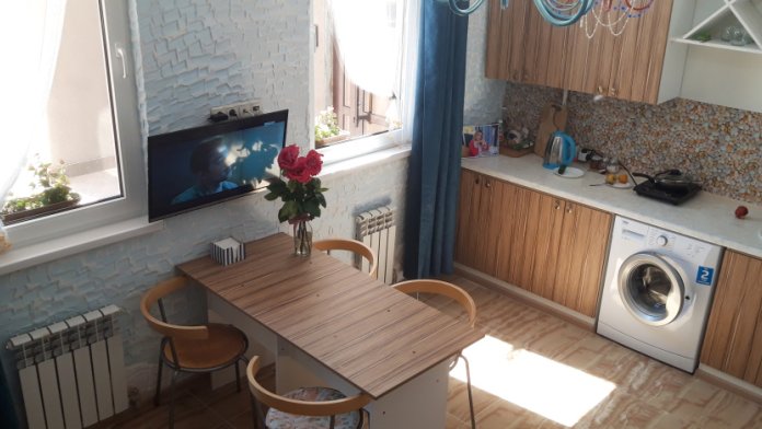 В квартире имеется вся необходимая мебель, двуспальный диван и двуспальная кровать, обеденный стол, стулья, шкаф. Вся бытовая техника, холодильник, телевизор, плита, чайник, вся посуда, Wi-Fi.