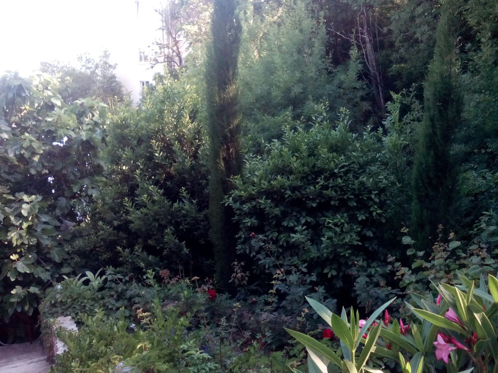вид на сад, море