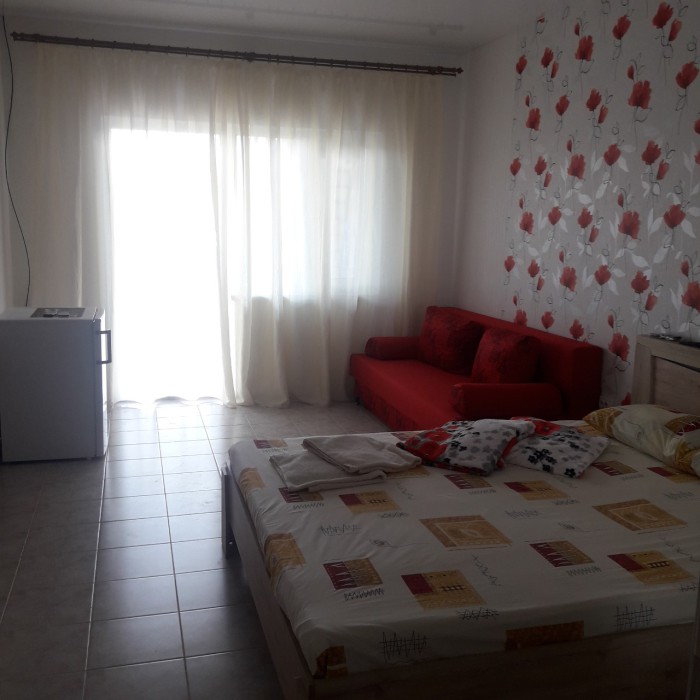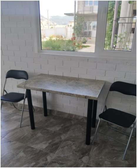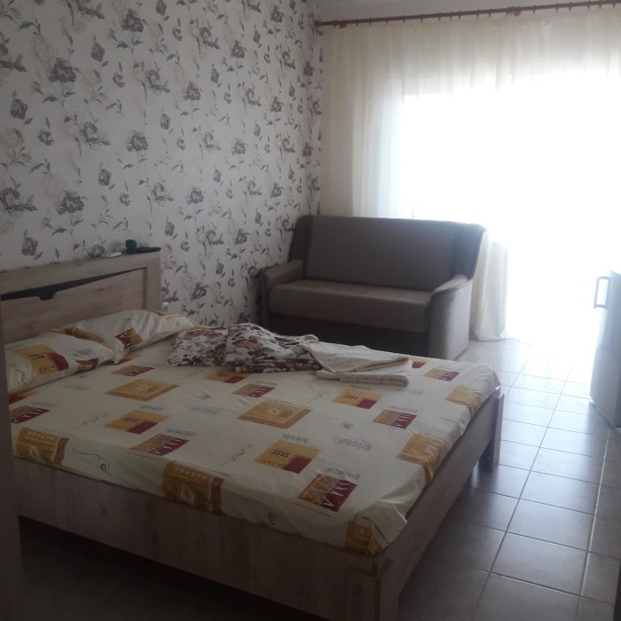 Перед номером столик со стульями, где можно отдохнуть в тени и покушать. В номере новая современная комфортная кровать с ортопедическим матрасом и односпальная тахта, что позволит хорошо выспаться. Есть красивое постельное белье, мягкие пледы, полотенца.