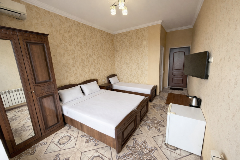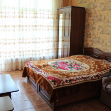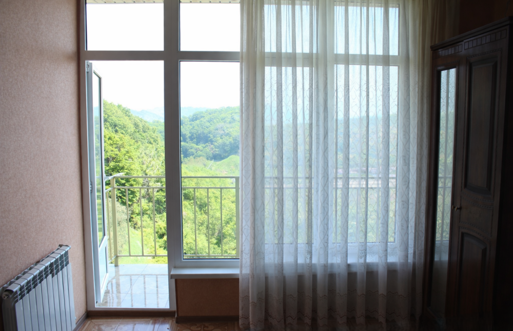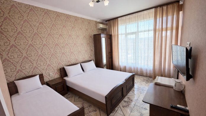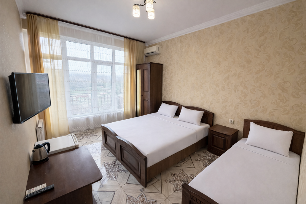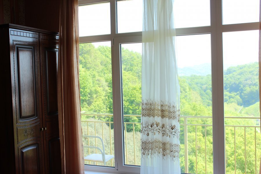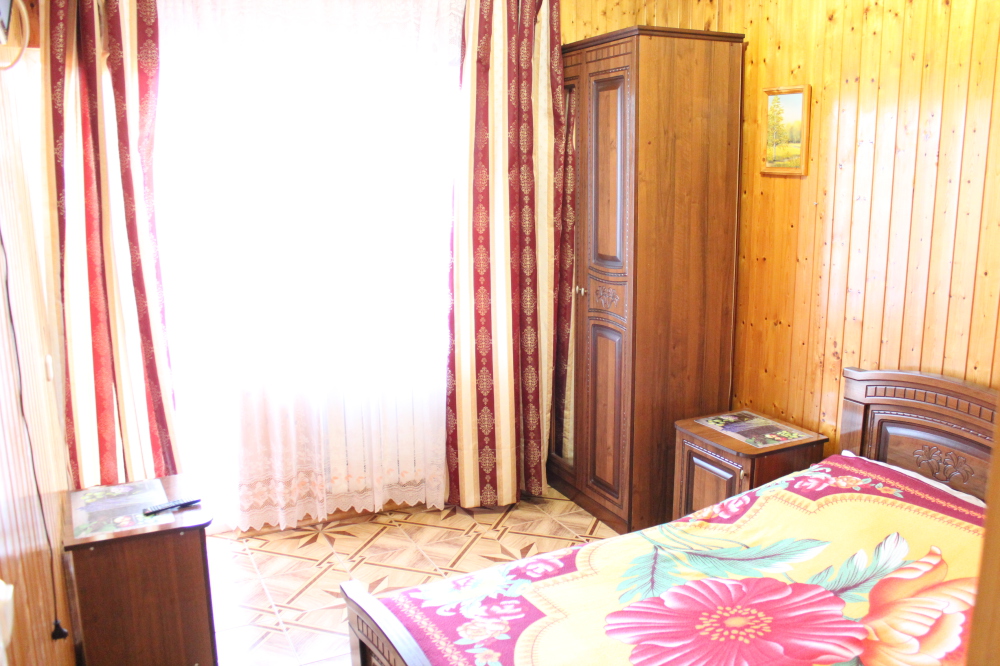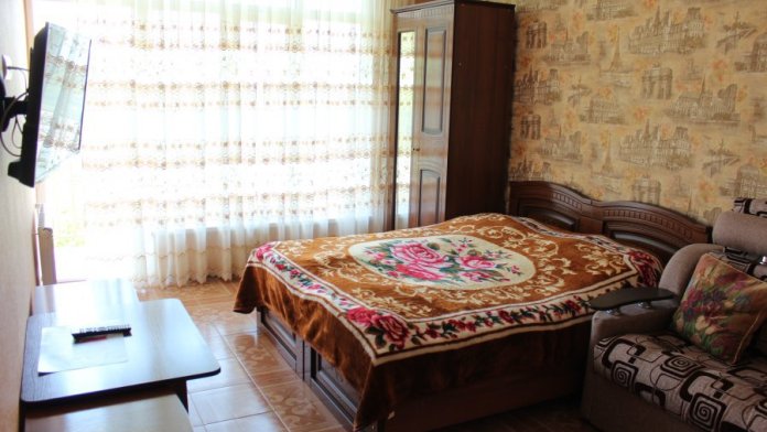 Просторные номера с хорошим ремонтом. В номерах есть: душ и туалет, ЖК телевизор (диагональ 81 см.), кондиционер (сплит-система), холодильник, чайник, фен, шкаф для вещей, стиральные принадлежности, отопление. Индивидуальный вход в каждый номер, собственный (не проходной) балкон с местом для отдыха (стол, кресла) с панорамным видом на горы и бассейн.