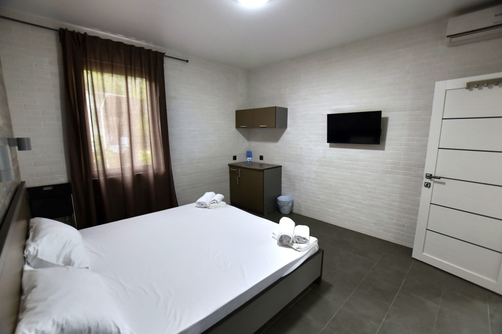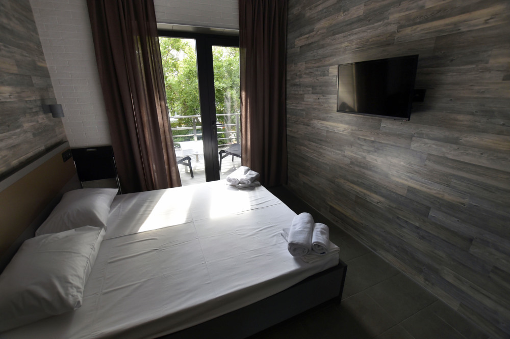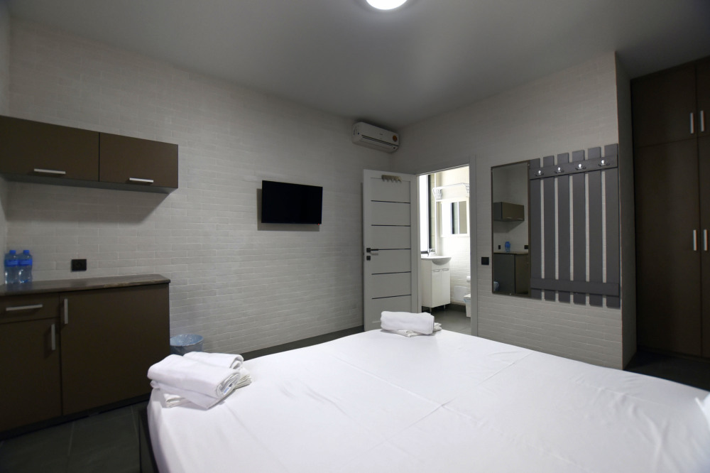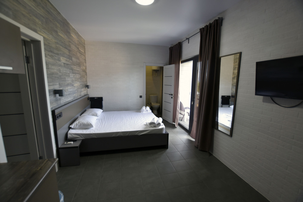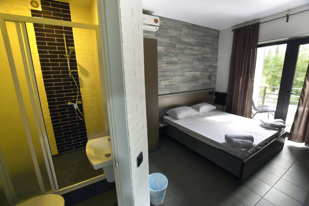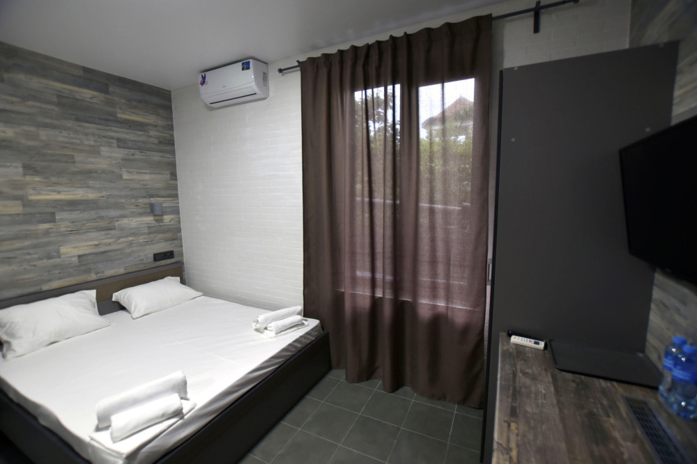 Нашим гостям мы предлагаем 9 комфортабельных 2,3,4-местных номеров (площадь каждого номера 25- 40 кв.м.), пять из которых, имеют террасы и оборудованы набором уличной мебели. Все номера оборудованы современными санузлами (фен, гостиничная парфюмерия). Интерьер и экстерьер здания выполнен в стиле модерн, сочетая при этом удобство, функциональность и простоту. Кроме прочего, на территории есть общая кухня для самостоятельного приготовления пищи, а так же беседки, и зоны отдыха.